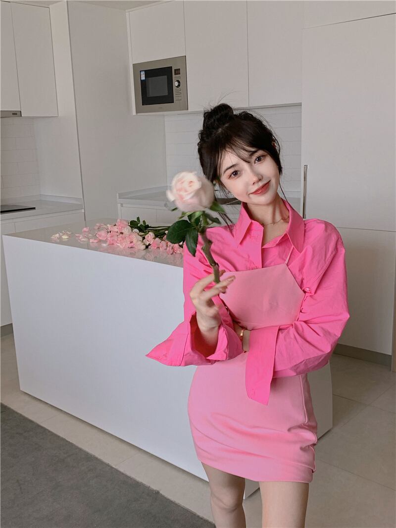 シャツ ドレス ピンク Xiaofeijia38231014251