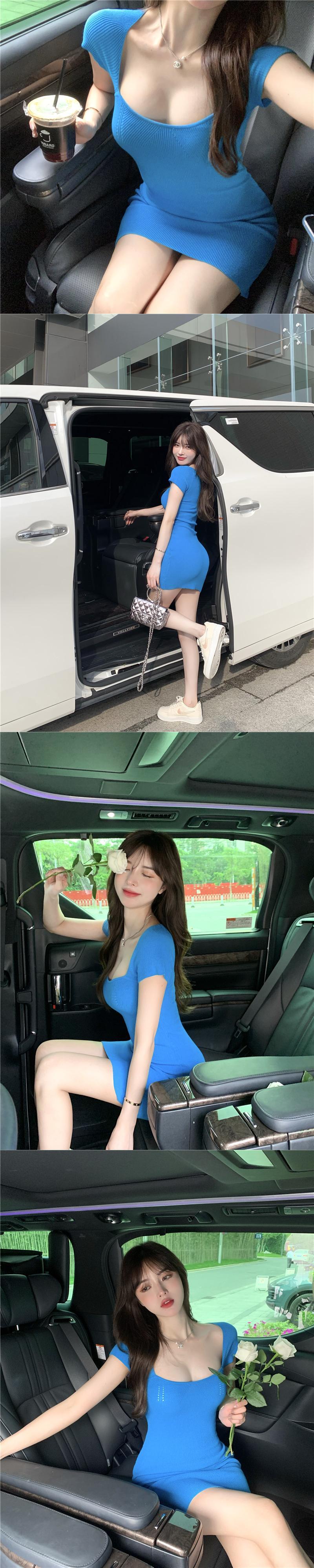 ドレス スタンダードスリムブルーニットスカート レトロ Xiaofeijia48504905983