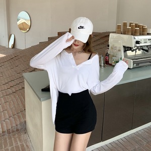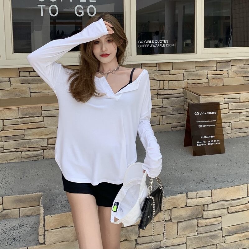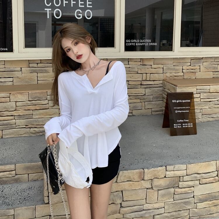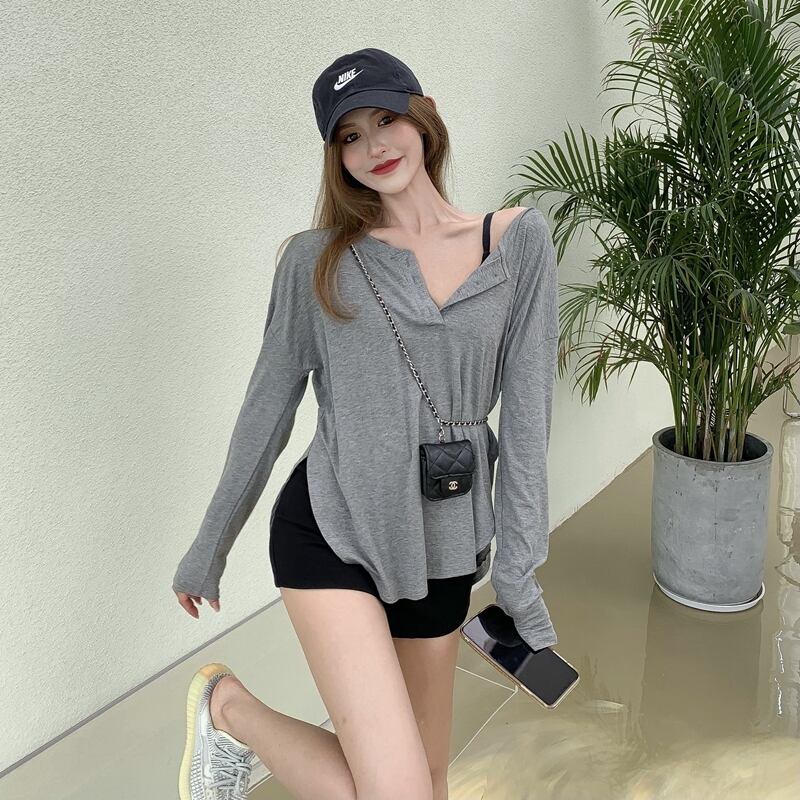 サマースタイルVネックTシャツ ルーズ薄手トップス ロング 夏物 Xiaofeijia50918704763