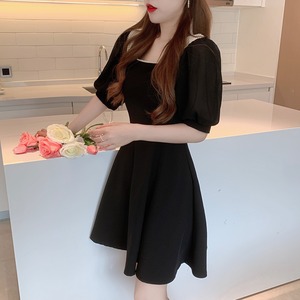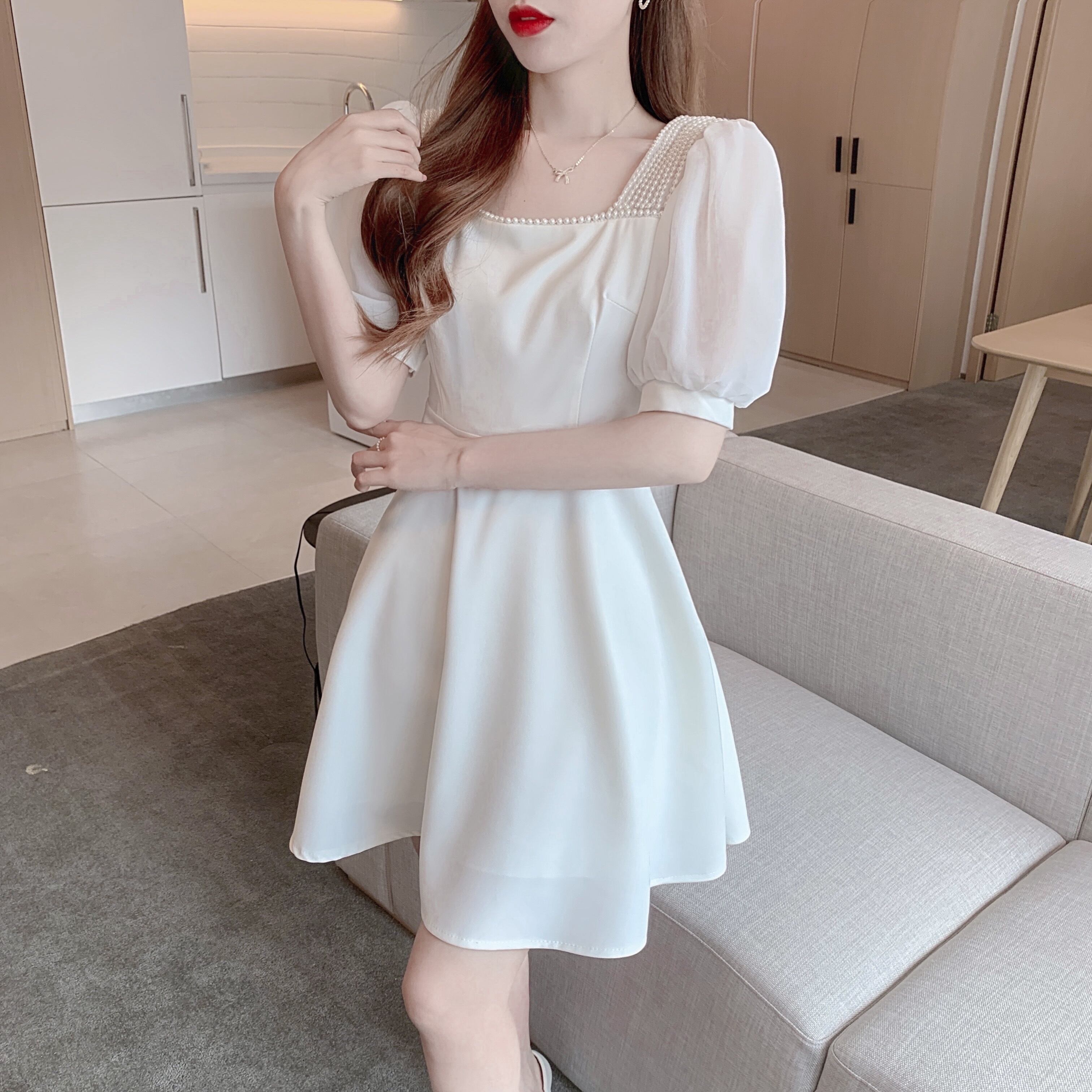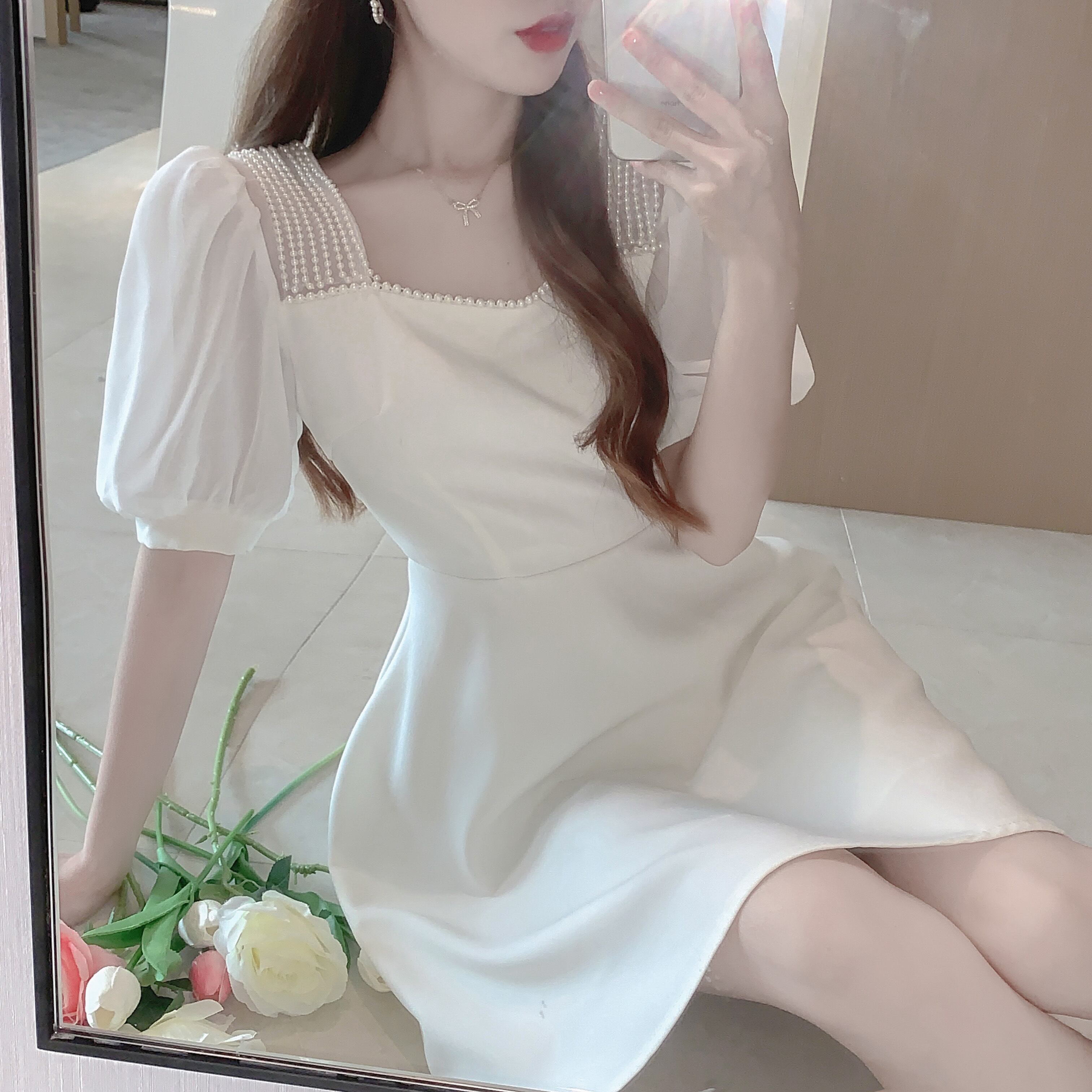 スリーブドレス スタンダードバックパールAラインスカート レトロ 真珠 スクウェア Xiaofeijia59630702470