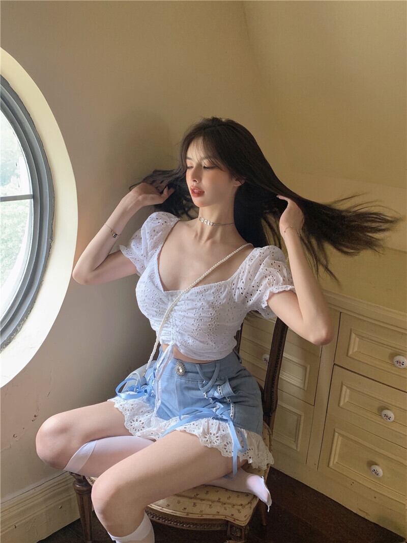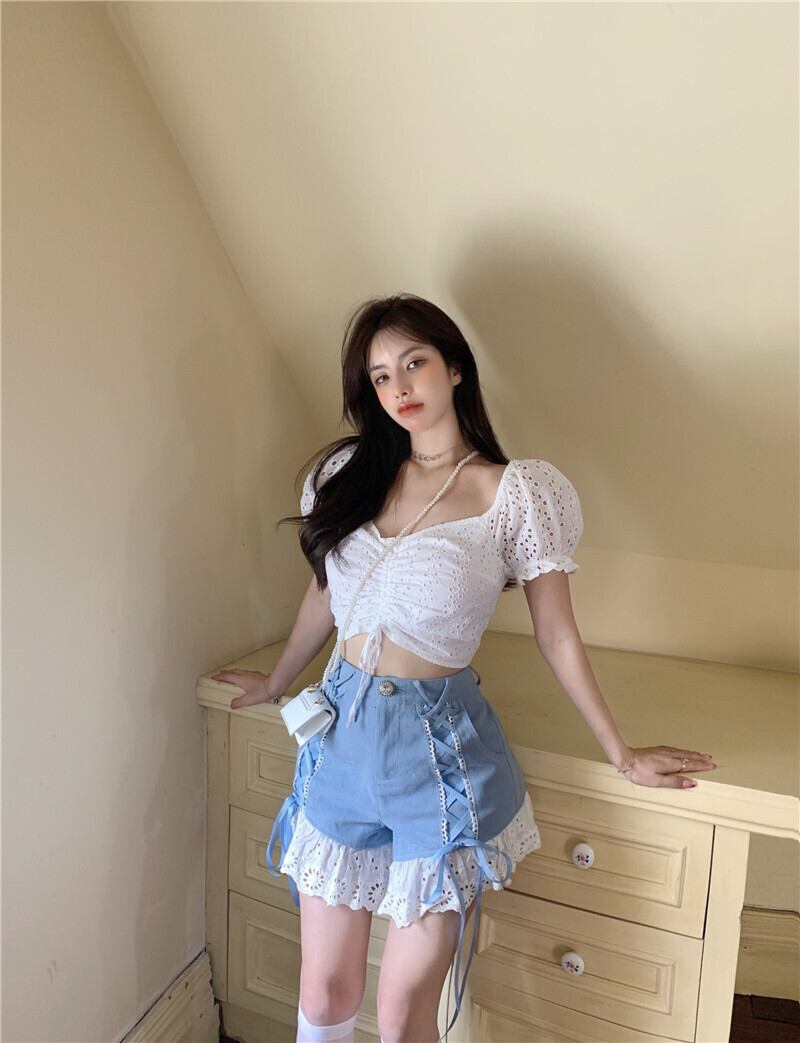 ハイウェストカジュアルショーツ レース ブルマー Xiaofeijia82374701591