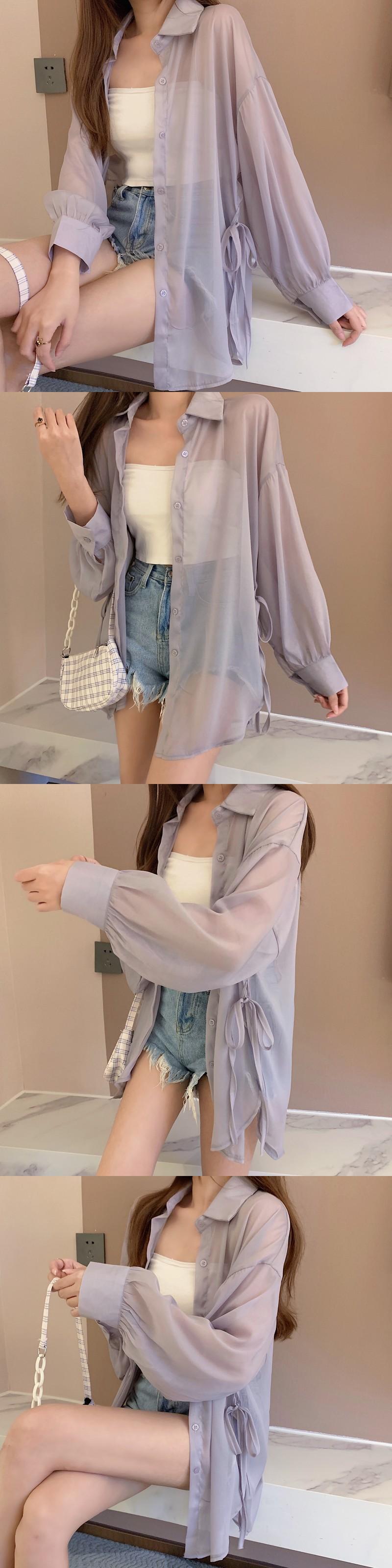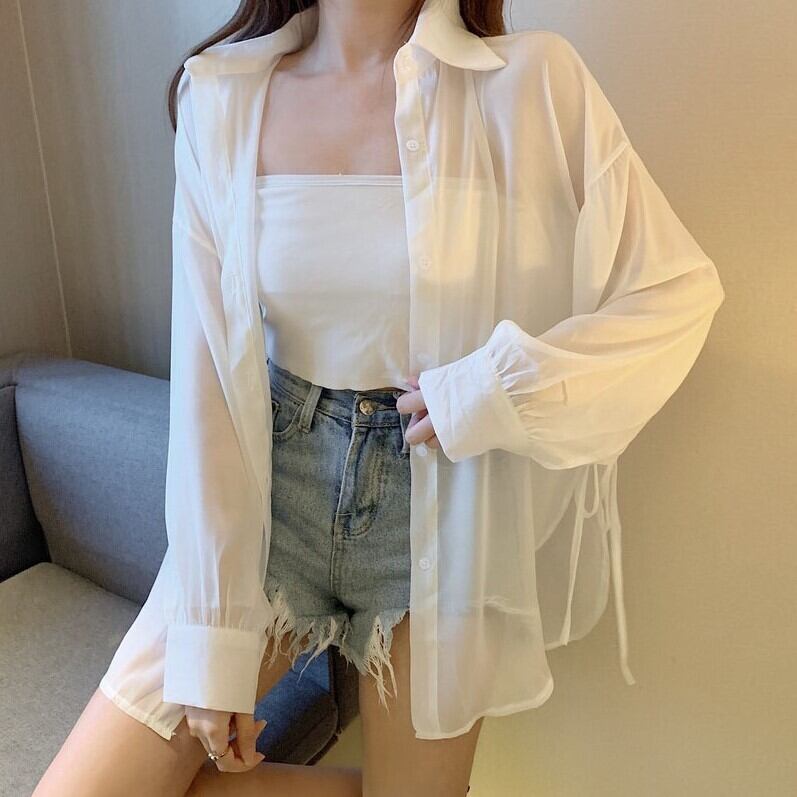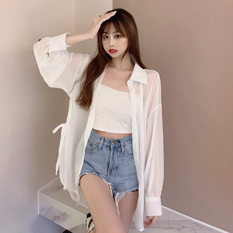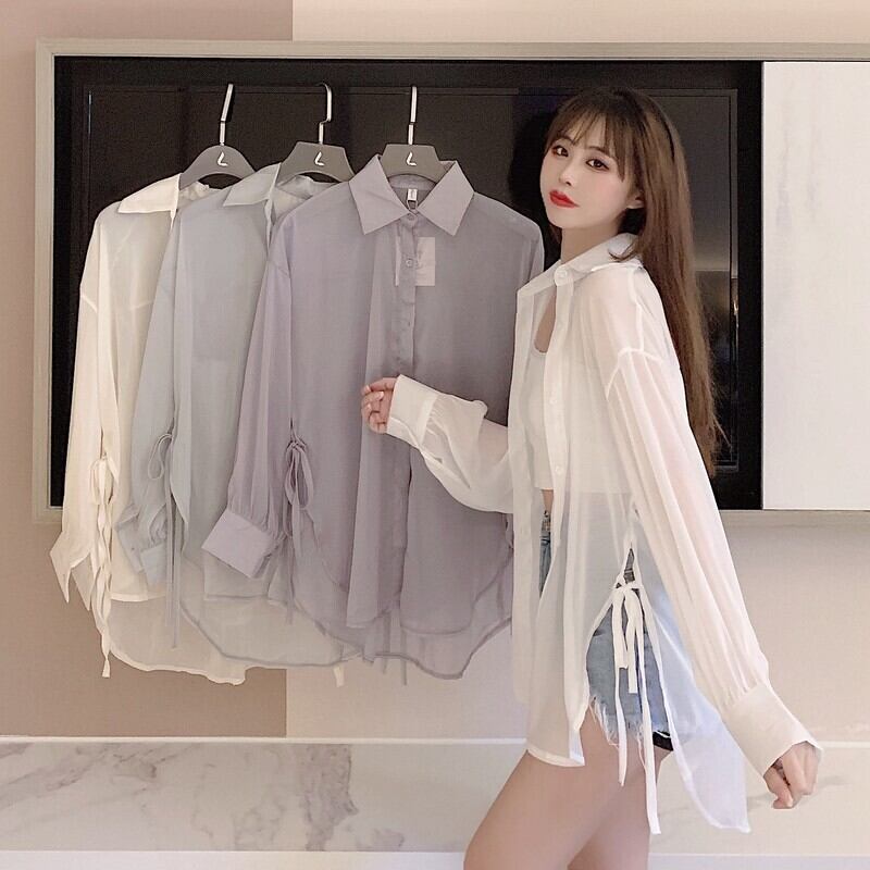 シフォンホワイトシャツ サマーバンドジャケット ロング 夏物 Xiaofeijia94549818230