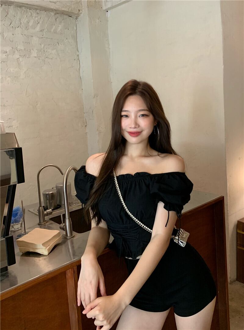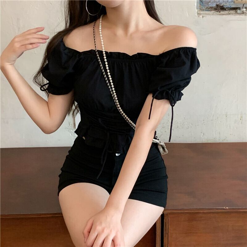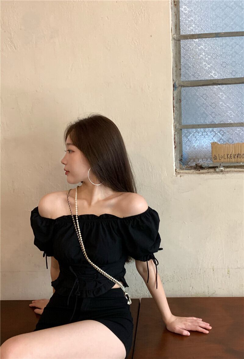 スタンダードショートシャツ トップス ハイウェストショーツ レトロ ブルマー Xiaofeijia47302800754