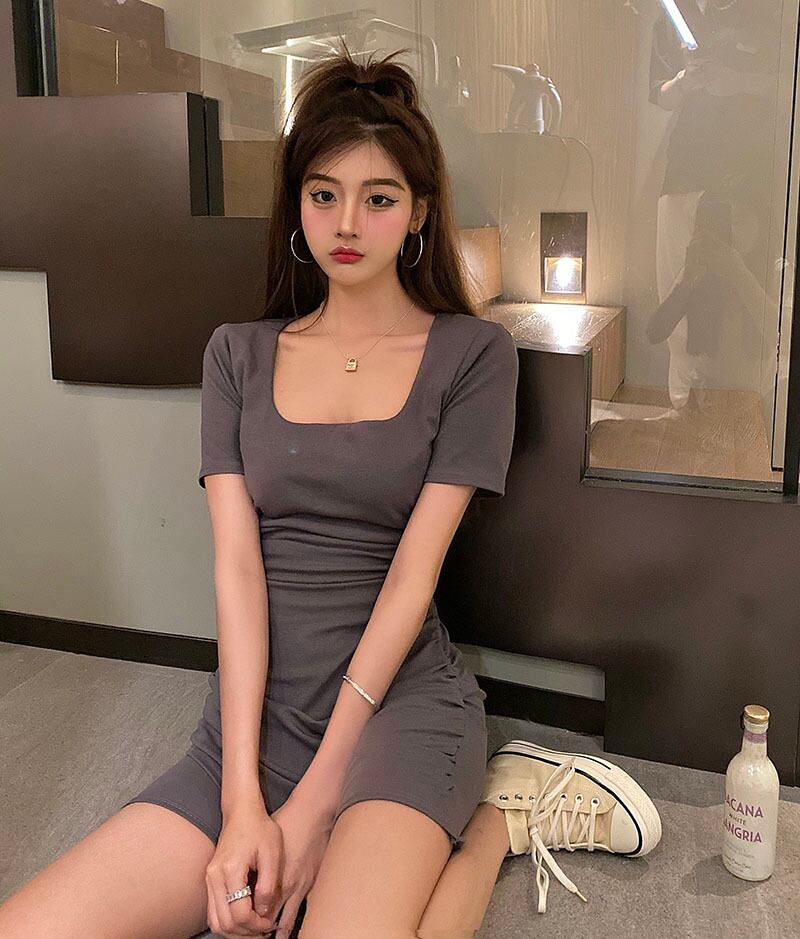 ショートスカート レディースサマーカラーソリッド ドレス 夏物 ソリッドカラー スクウェア ヨーロピアン Xiaofeijia67981760148