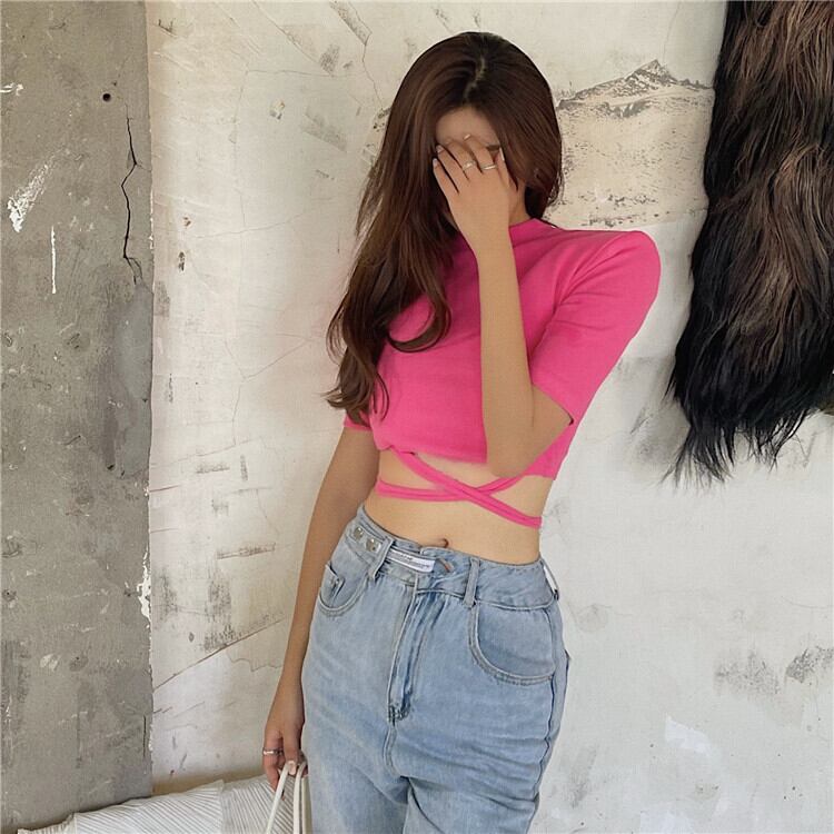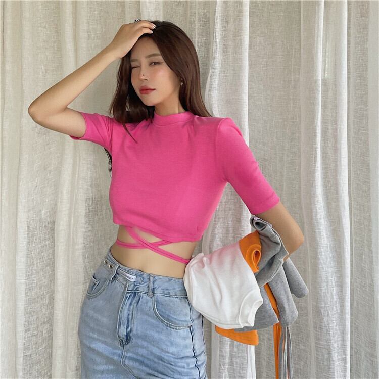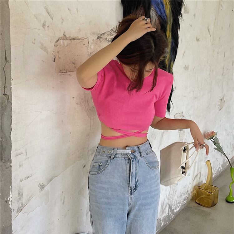 サマースタイルショートスリムTシャツ トップス レディース 夏物 Xiaofeijia95343125710