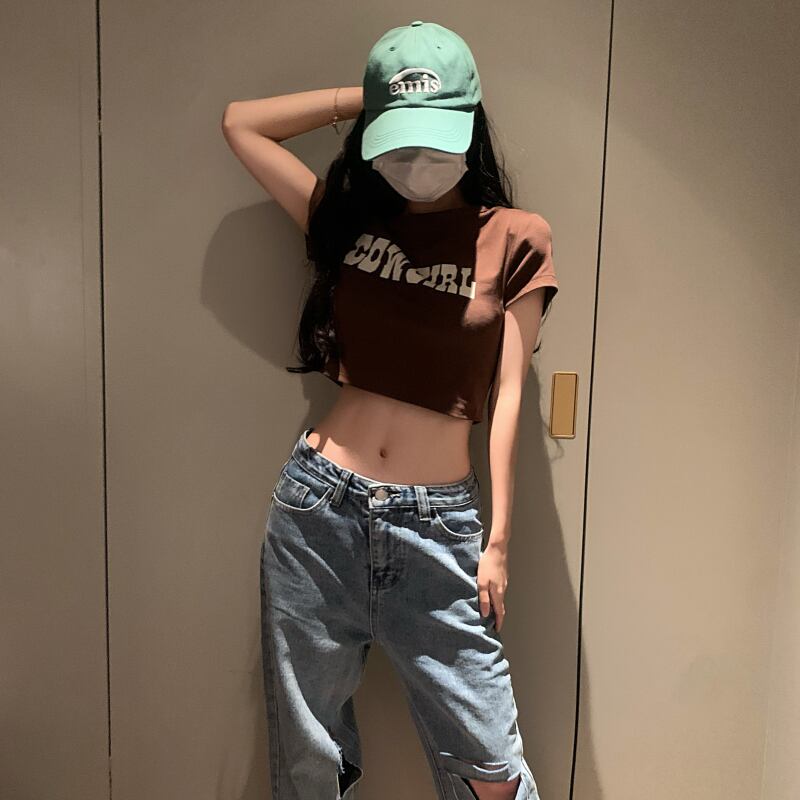プリント柄ショートサマー半袖スリーブTシャツ ハーフスリーブ 夏物 Xiaofeijia64031708327