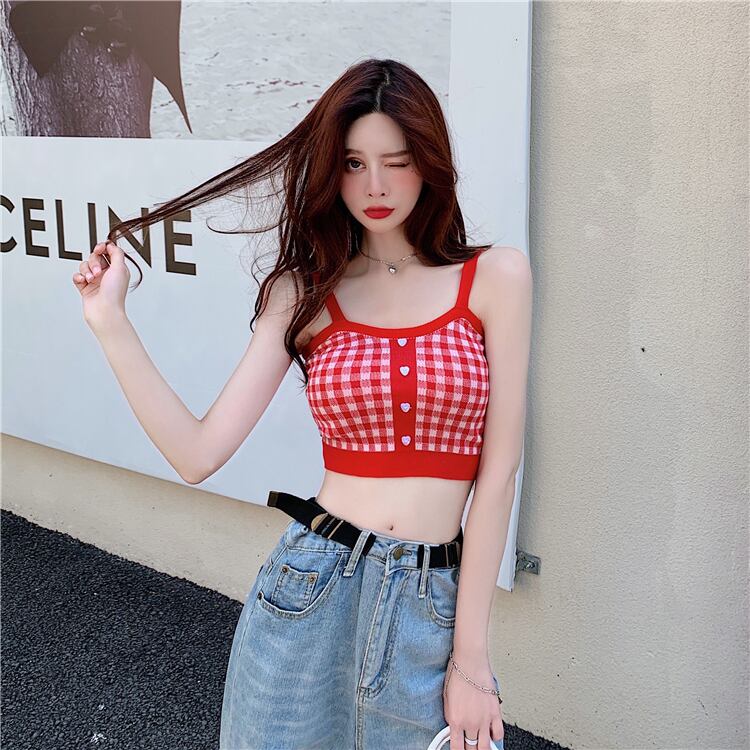 格子柄ショートニットトップス Xiaofeijia31252125857