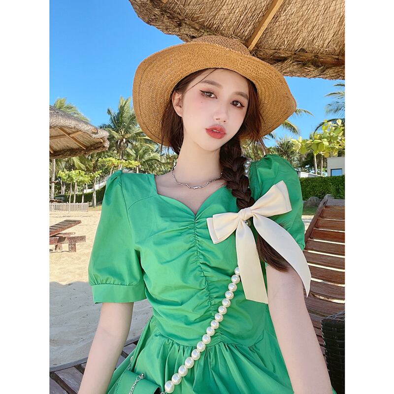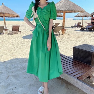 スタンダードVネックドレス 薄手スリーブパールチェーン レトロ 真珠 Xiaofeijia21802765827