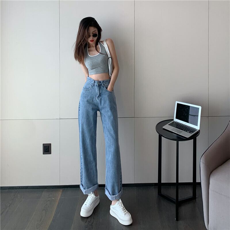 ウェストワイドレッグカラージーンズ レディースサマールーズ薄手スリムパンツ 夏物 ワイドパンツ Xiaofeijia41439449850