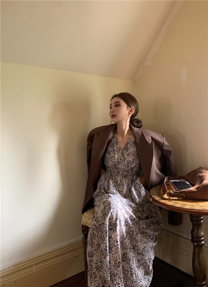 スタンダードフローラルドレス ルーズジャケット レトロ 花柄 Xiaofeijia58683004741