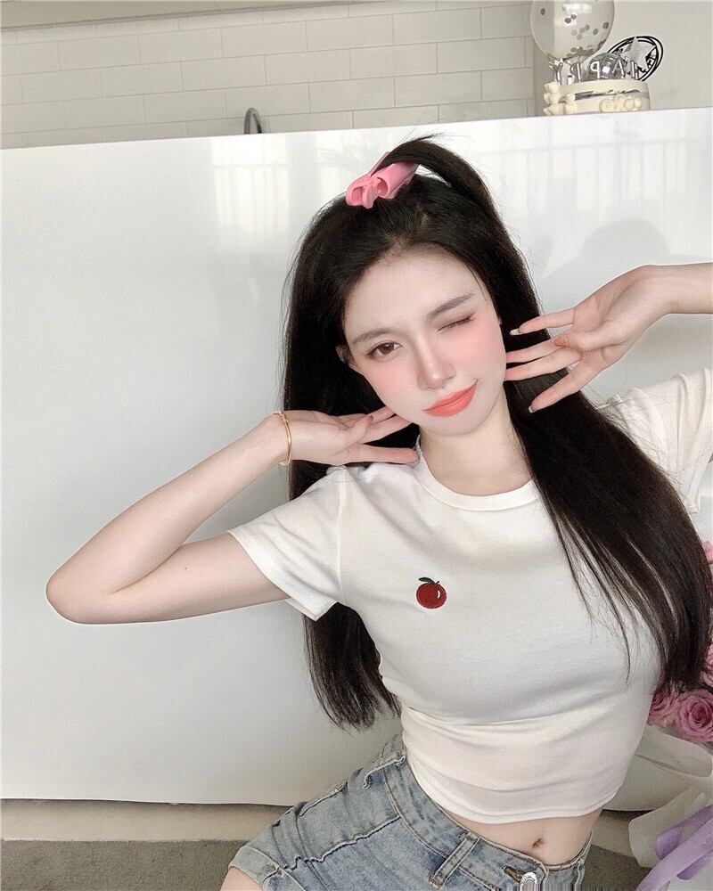 カラースリムショート半袖スリーブTシャツ ハーフスリーブ 大人ガーリー スウィート キュート カジュアル Xiaofeijia34988279547