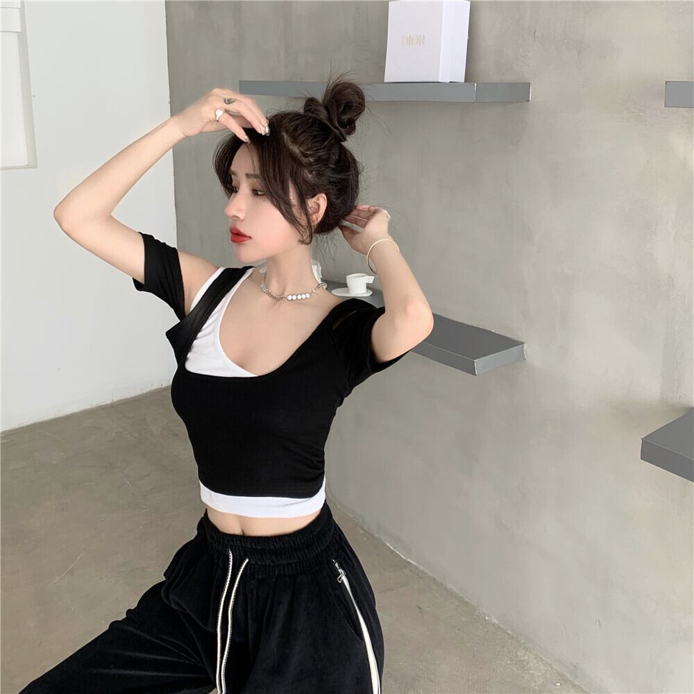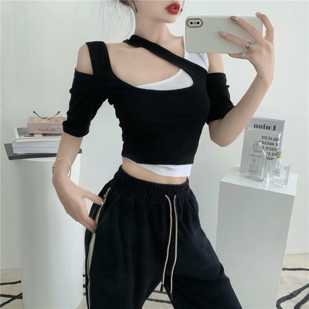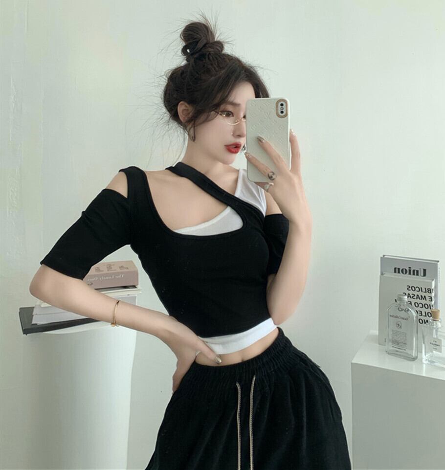 ショートストラップレス シャツ Tシャツ Xiaofeijia7848114725