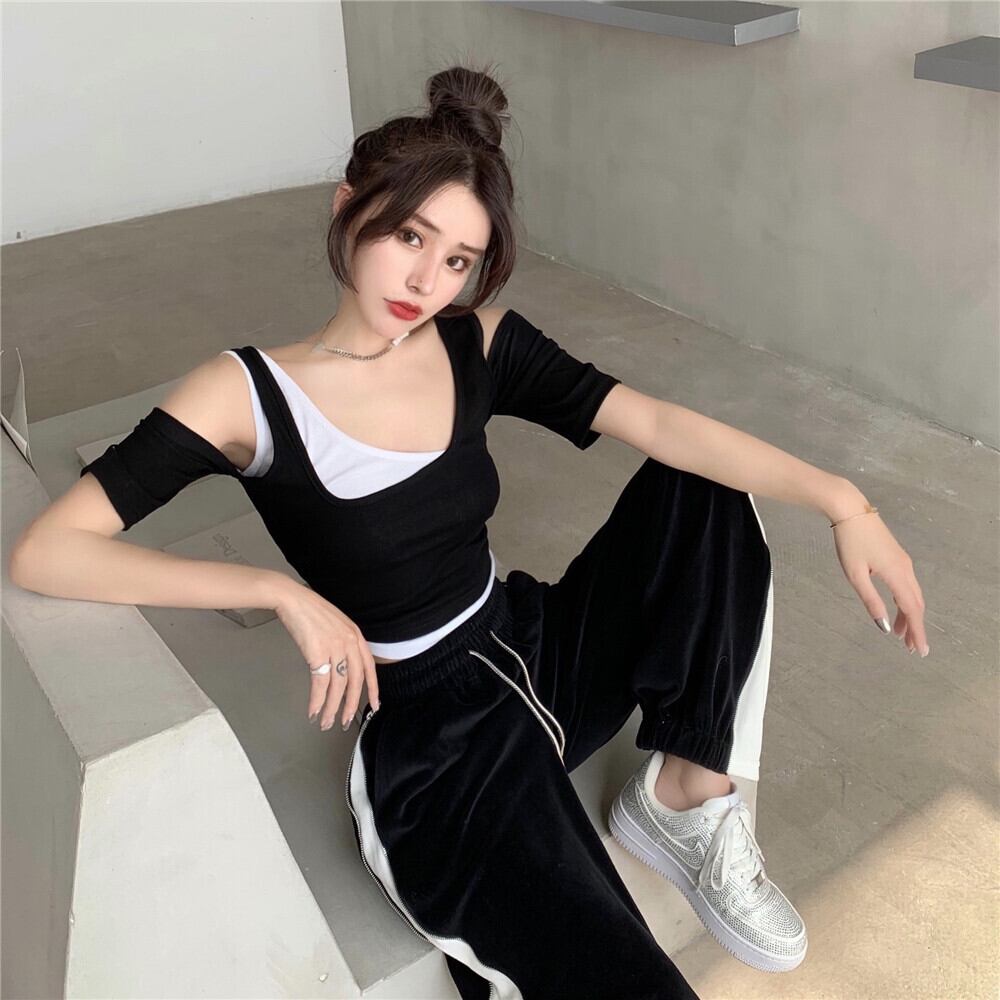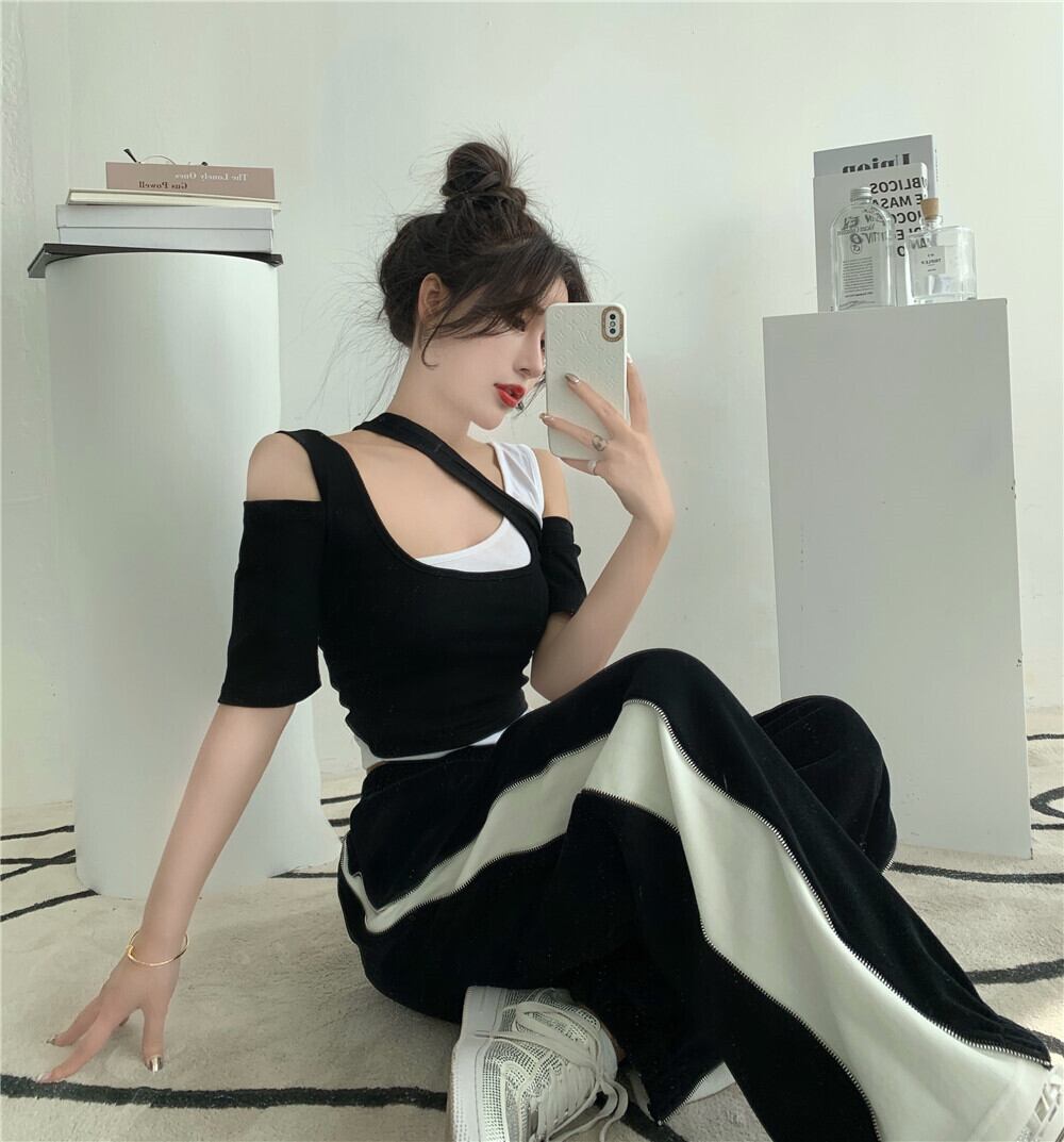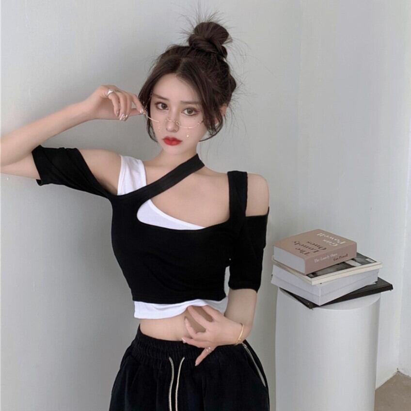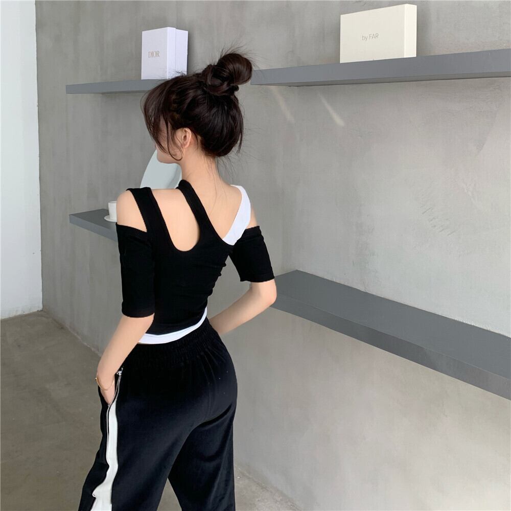 ショートストラップレス シャツ Tシャツ Xiaofeijia7848114725