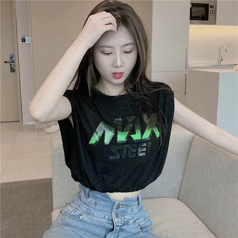 スタイルプリントルーズ薄手ショートTシャツ トップス Xiaofeijia94889726824