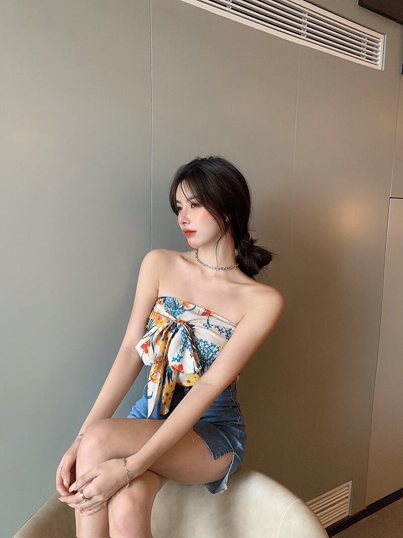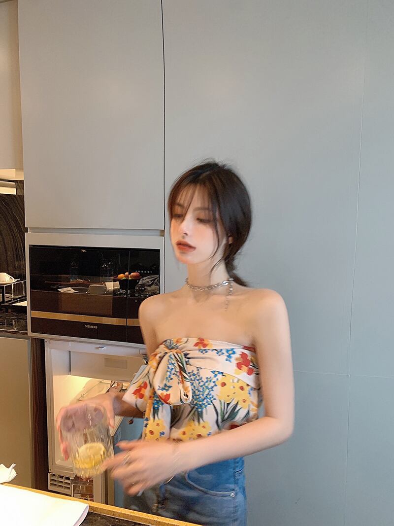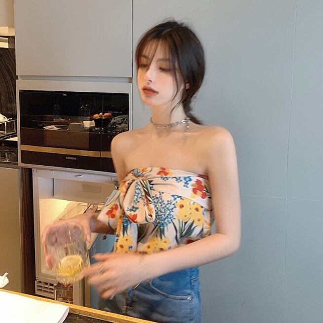 フローラルノースリーブストラップレスサマー 夏物 花柄 Xiaofeijia70646681980