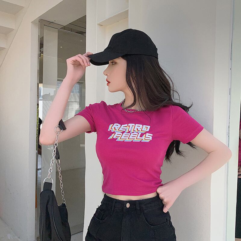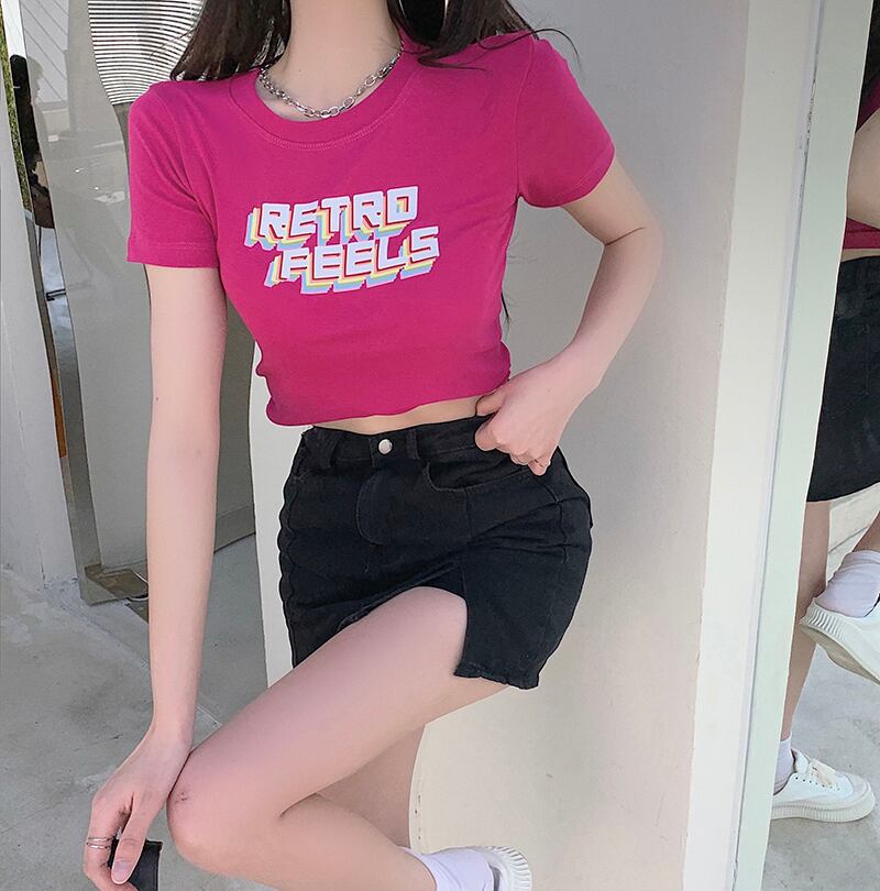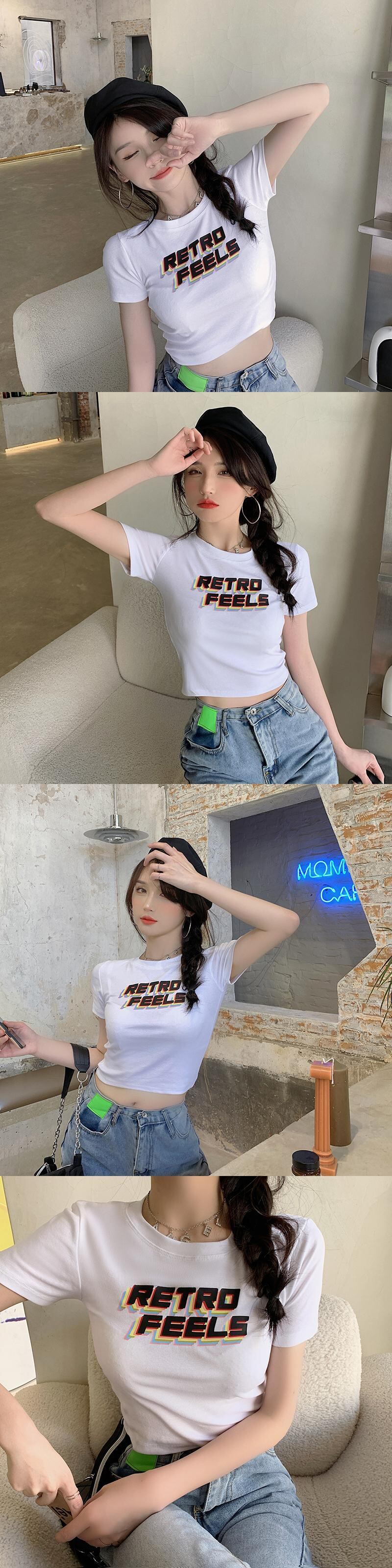 プリント柄ショートTシャツ 半袖スリーブクロップトップ トップス レディース ハーフスリーブ Xiaofeijia89100146438