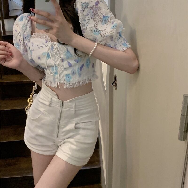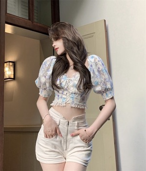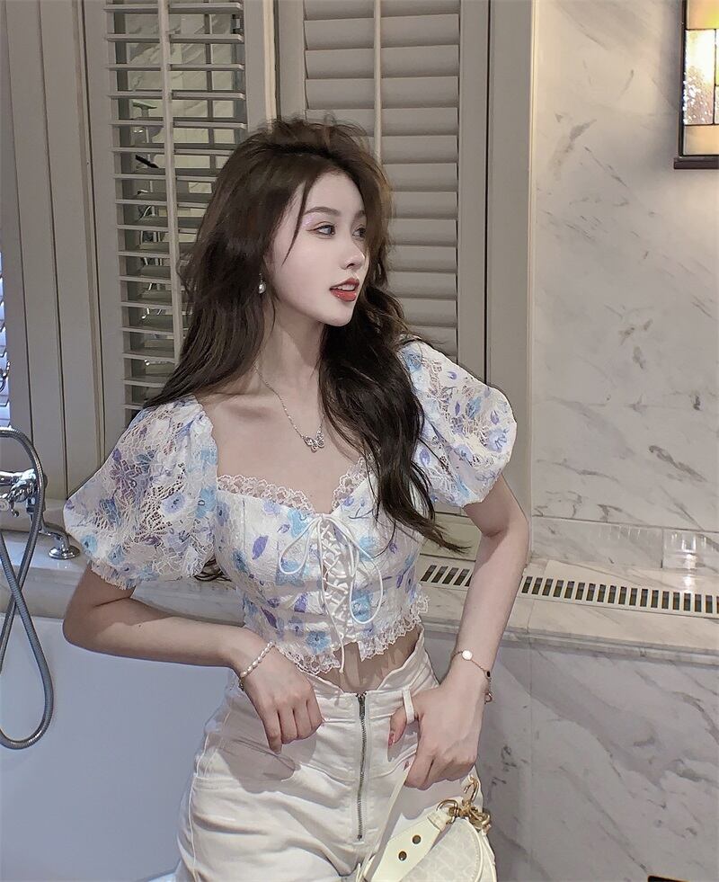 スタンダードレーススリーブトップス レトロ Xiaofeijia20390023953