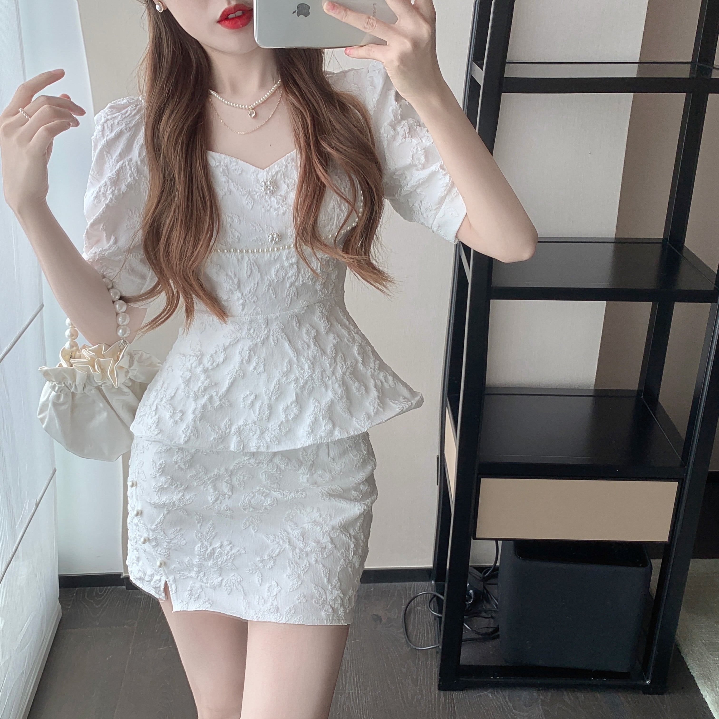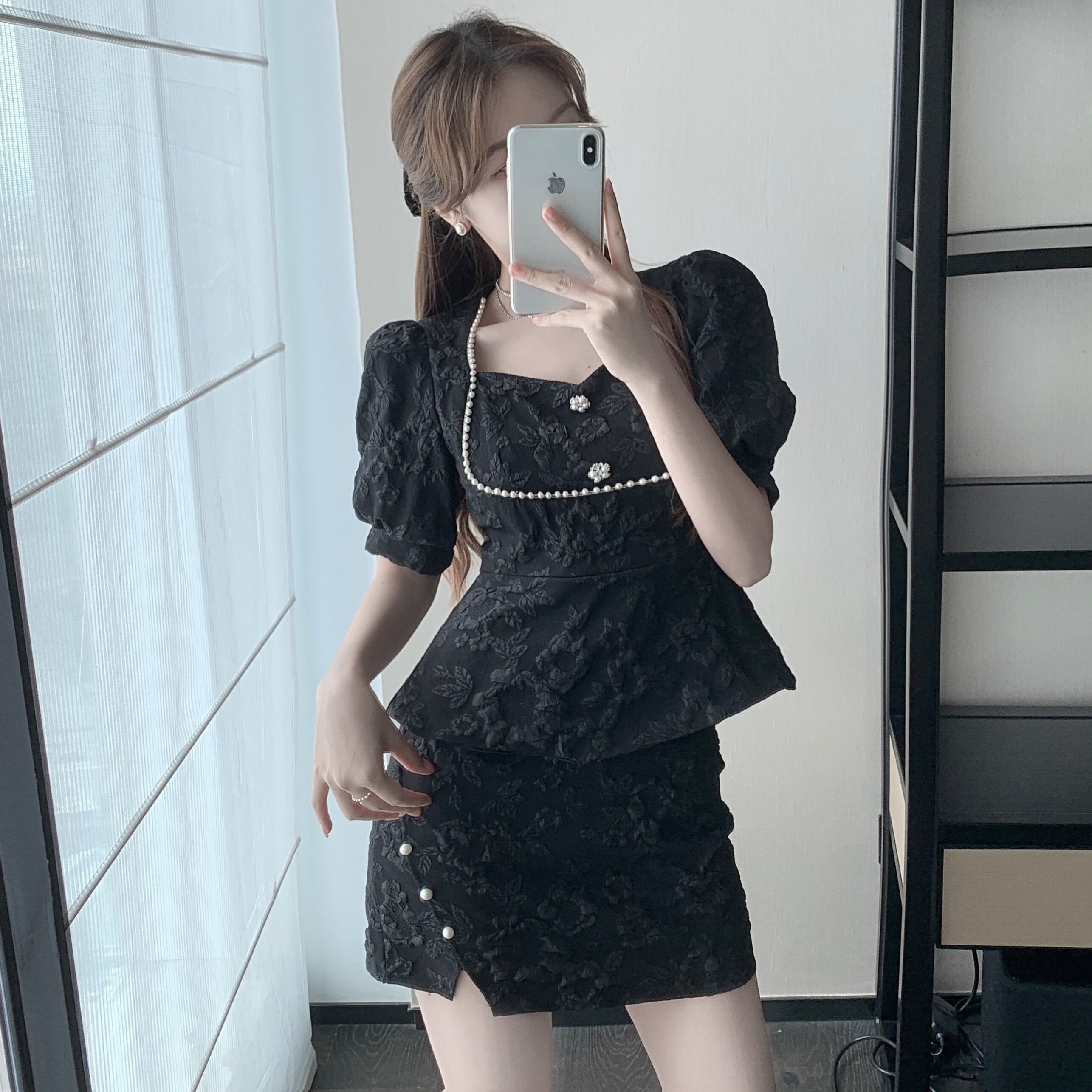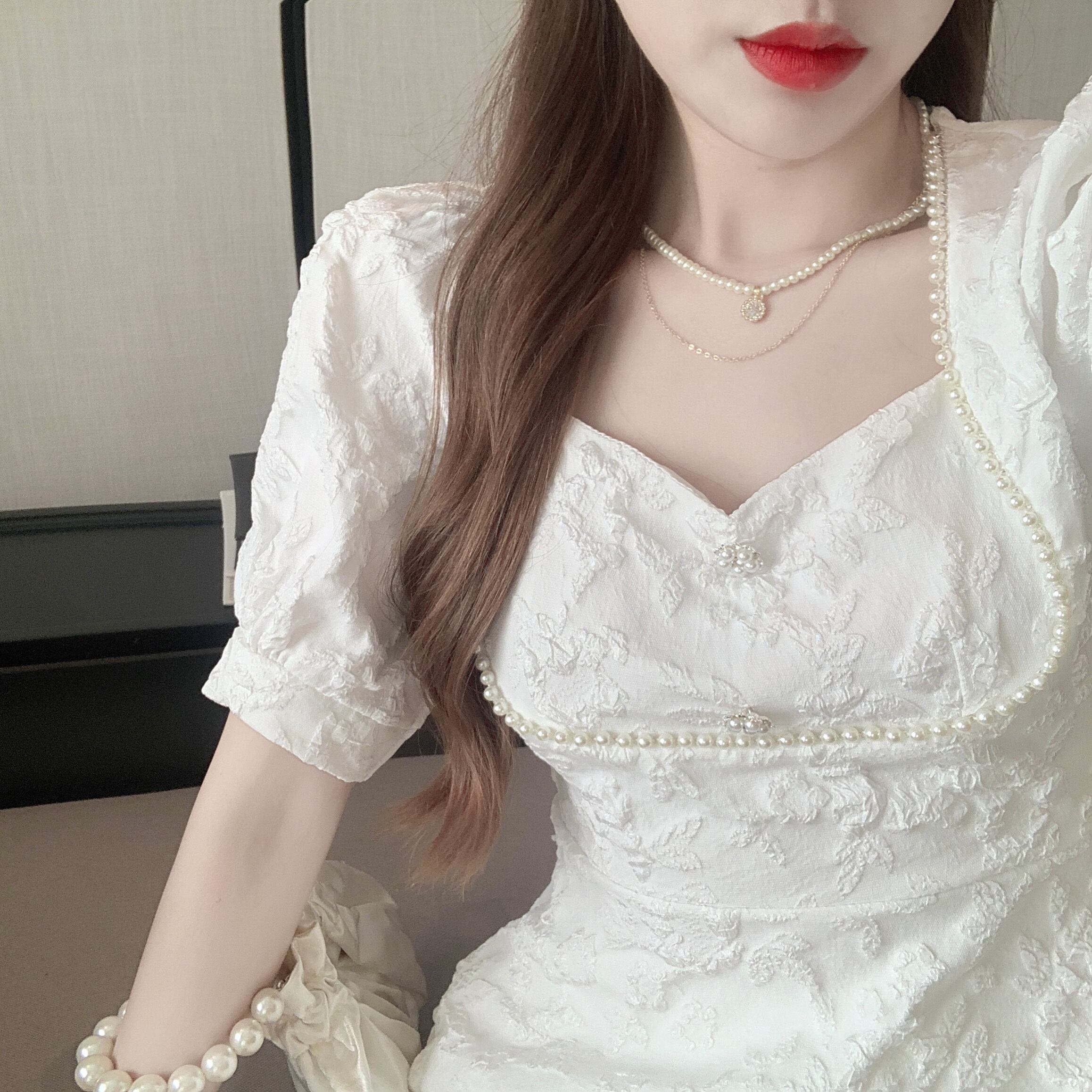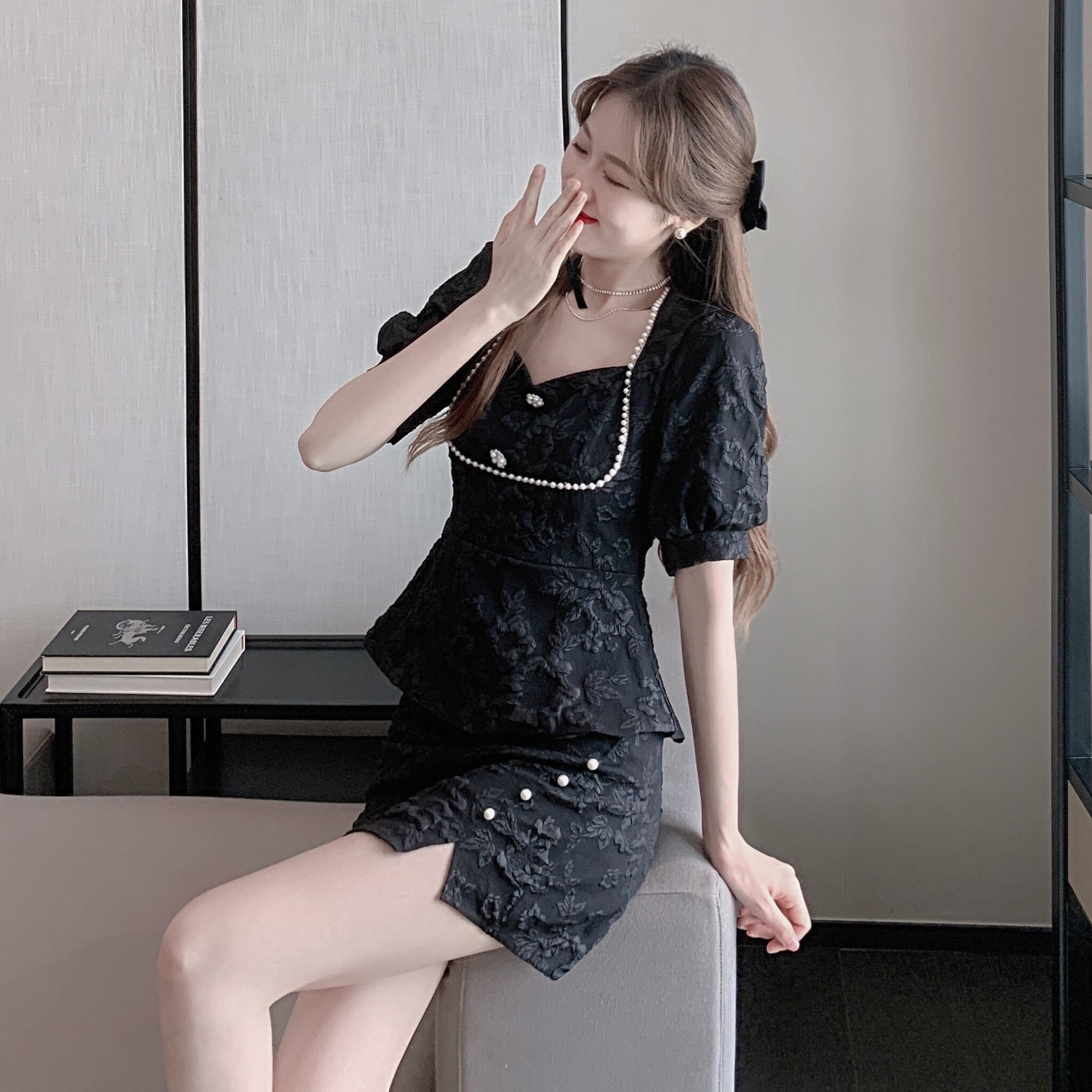 ジャカードスタンダードパールドレス トップス スカート レトロ 真珠 Xiaofeijia88537041755