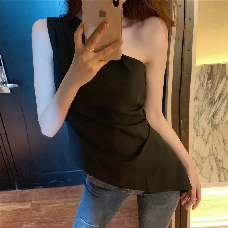 プリーツバックノースリーブサマーシャツ 夏物 Xiaofeijia94693620573