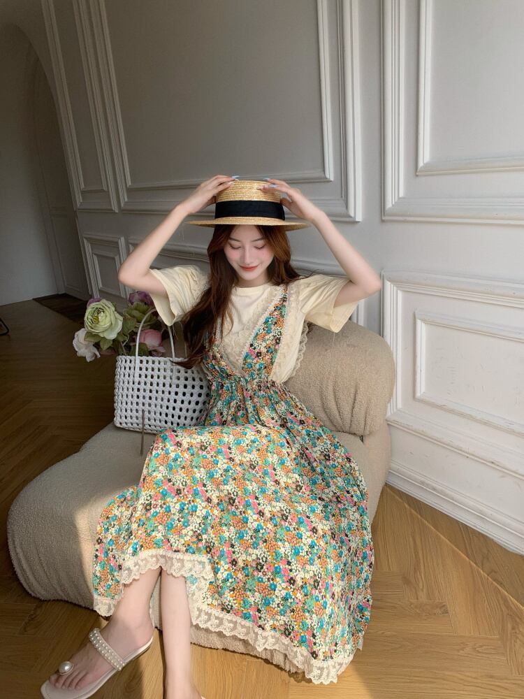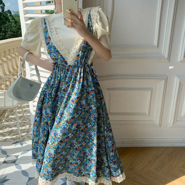 ドレス サマーレースフローラルスカート ウェスト 夏物 花柄 フラワーデザイン ステッチ Xiaofeijia47378243879