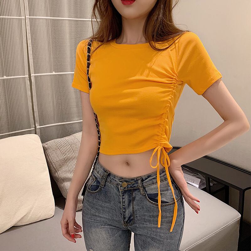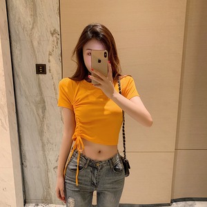 ギャザークロップドショートTシャツ トップス Xiaofeijia93755635270