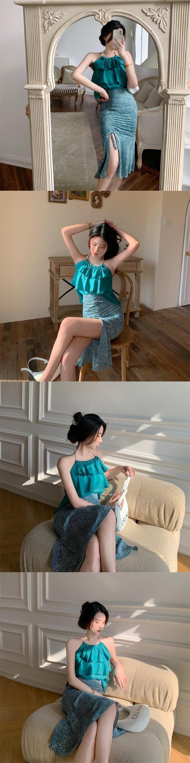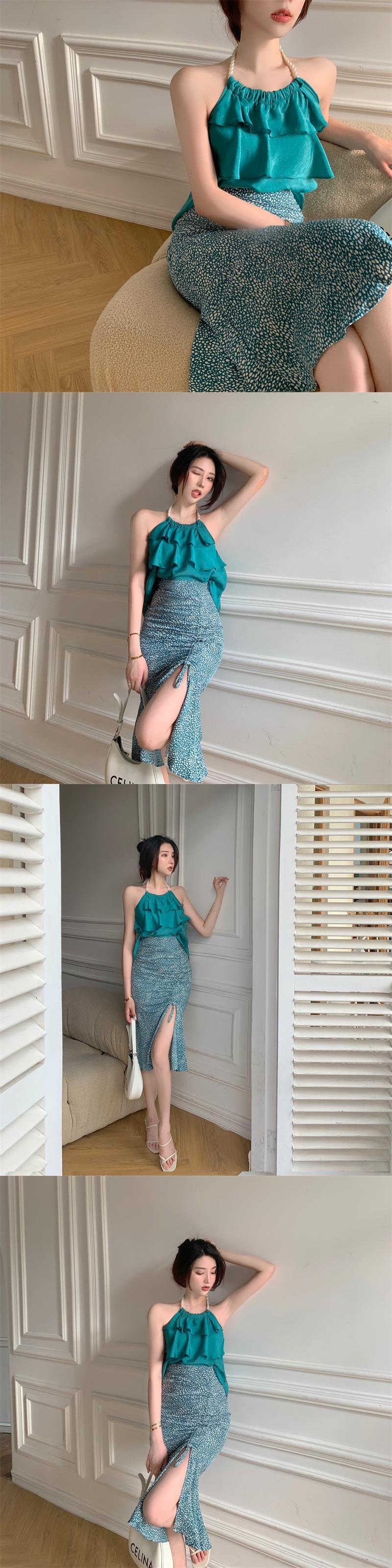 色:白いホルターネック,マラカイトグリーンホルター,ホワイトヒョウスカート,マラカイトグリーンのヒョウスカート