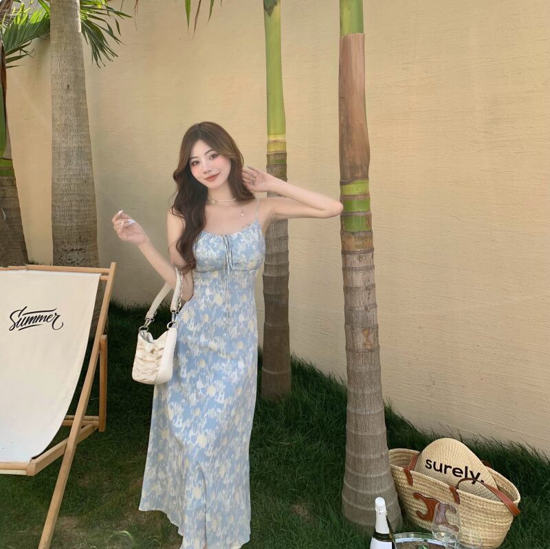 スカート スタンダードホルターフローラルサマースリムドレス レトロ レース 夏物 花柄 レースアップ Xiaofeijia13770214434
