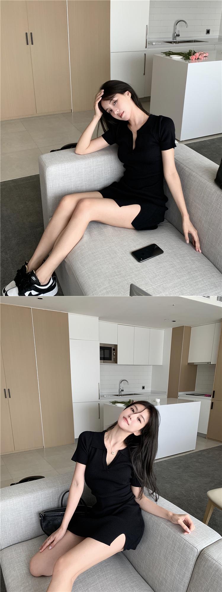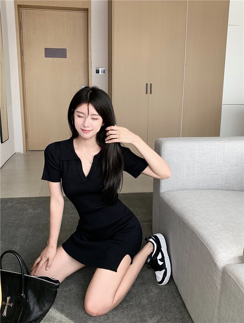スリムブラックニットドレス カラー薄手スカート シルク Xiaofeijia68189912519