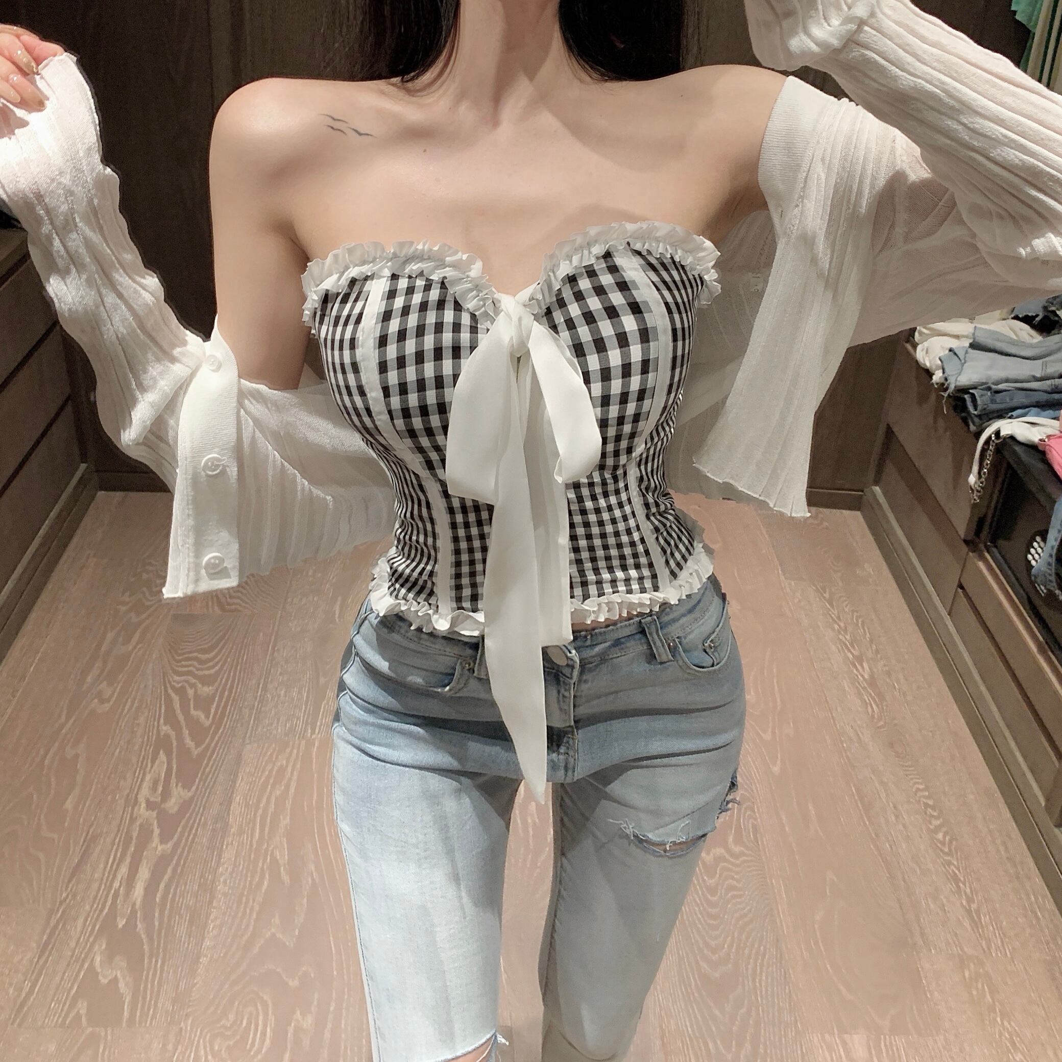 格子柄トップス ニットカーディガン 大人ガーリー スウィート キュート カジュアル Xiaofeijia60411407252