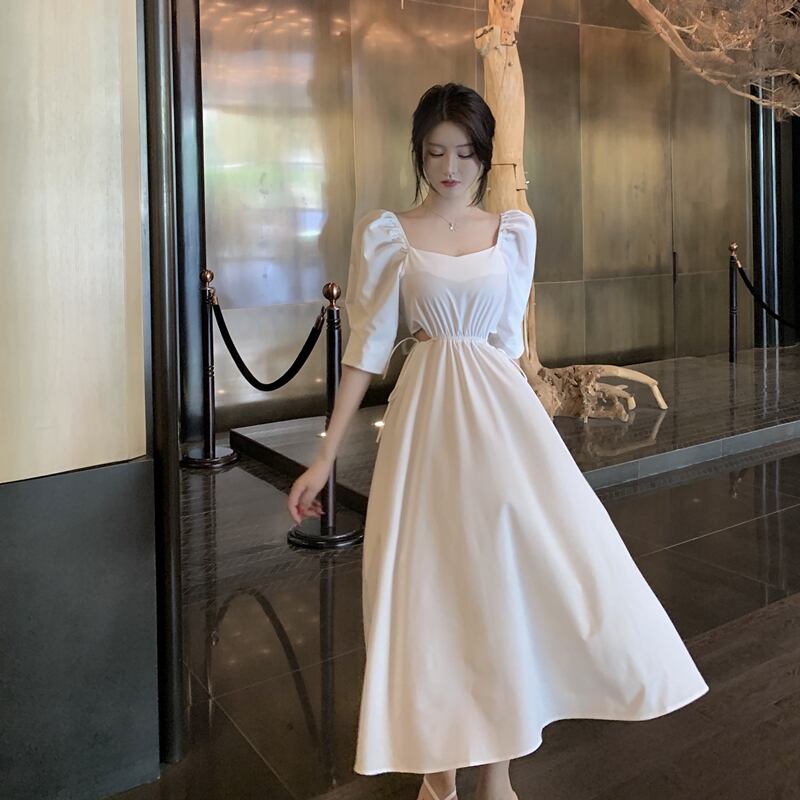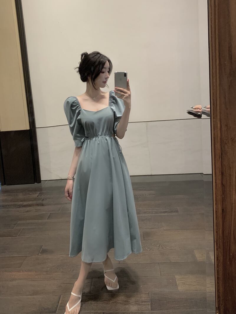 スリーブミディスカート グリーンドレス Xiaofeijia31637147156