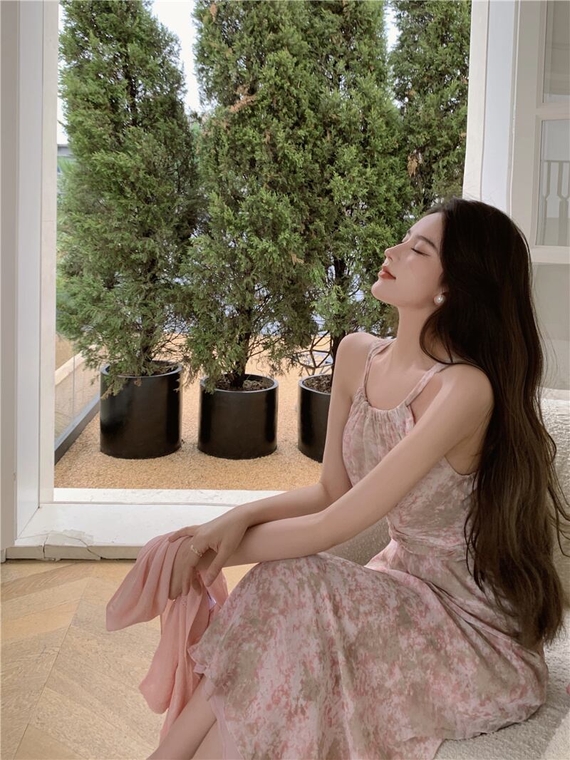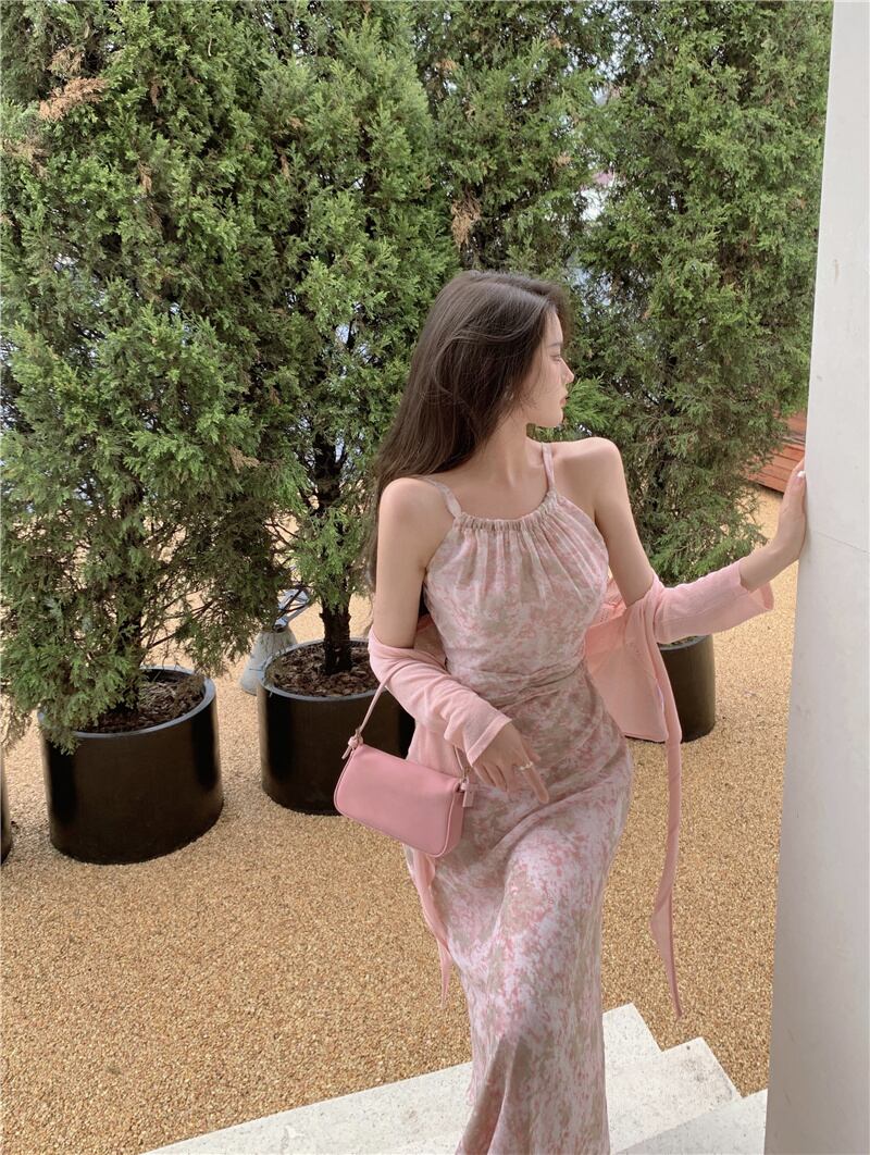 シフォンドレス サマースリムロングスカート ピンク 夏物 Xiaofeijia62053545672