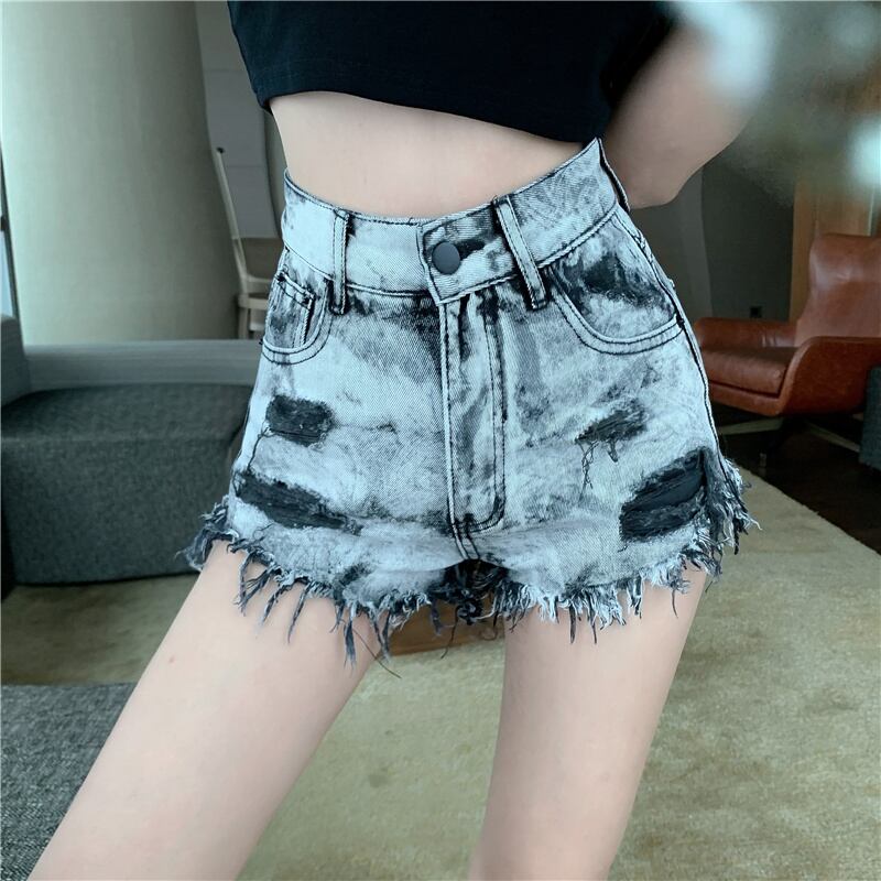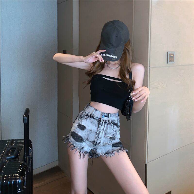 カラージーンズ レディーススタンダードサマーパンツ ハイウェストウェストワイドレッグショーツ レトロ 夏物 ブルマー ワイドパンツ Xiaofeijia92963232372