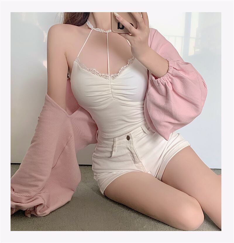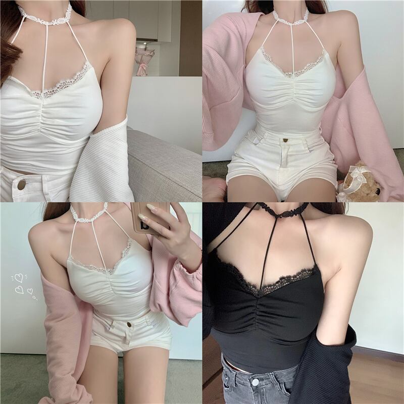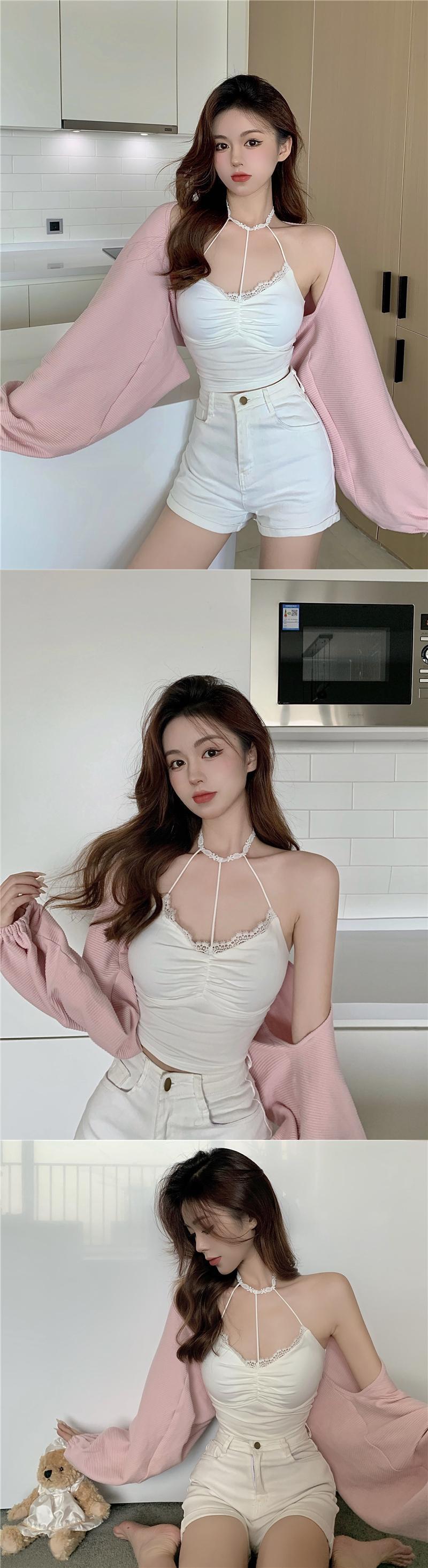 レースサイドホルターサマースタイルプリーツショートトップス 夏物 Xiaofeijia69600795594