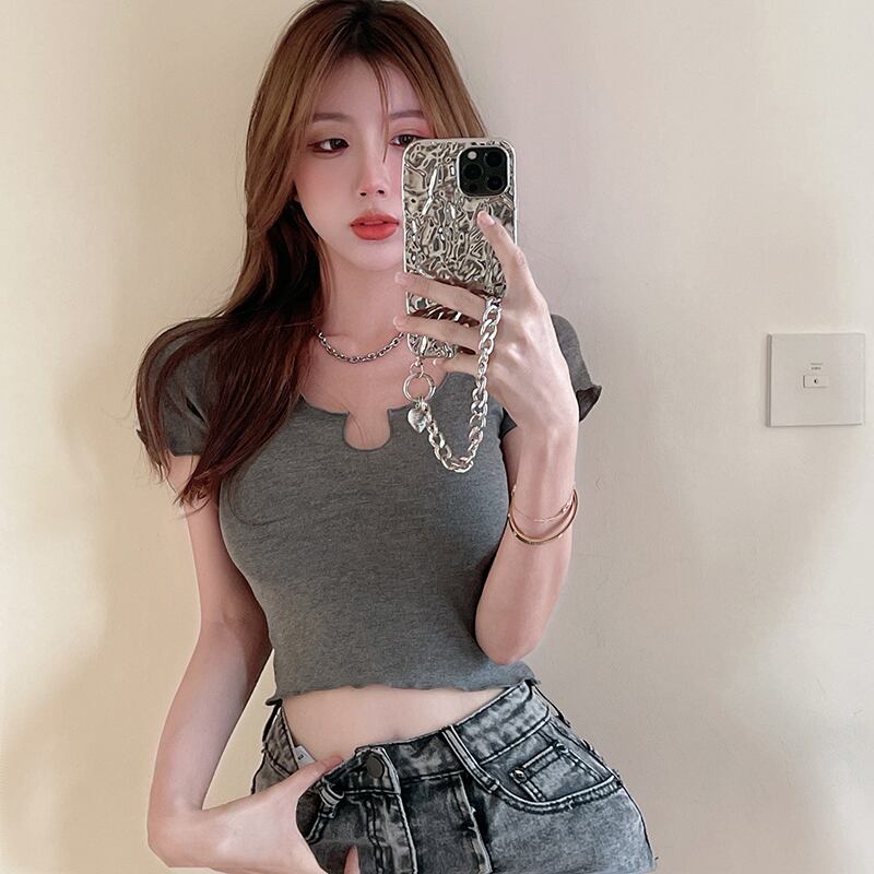 ショートTシャツ クロップドハイウェストトップス Xiaofeijia62833501219