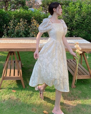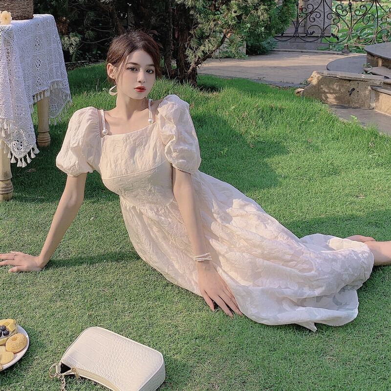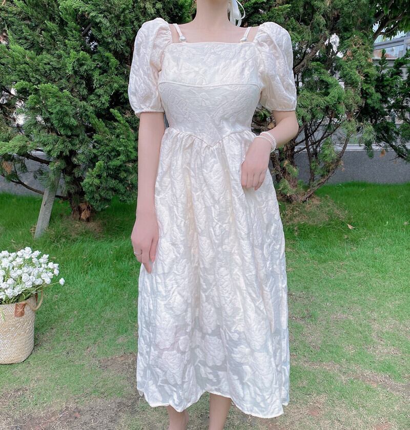 スリーブドレス サマーウェストカラースカート 大人ガーリー スウィート キュート カジュアル 夏物 スクウェア Xiaofeijia20964193081