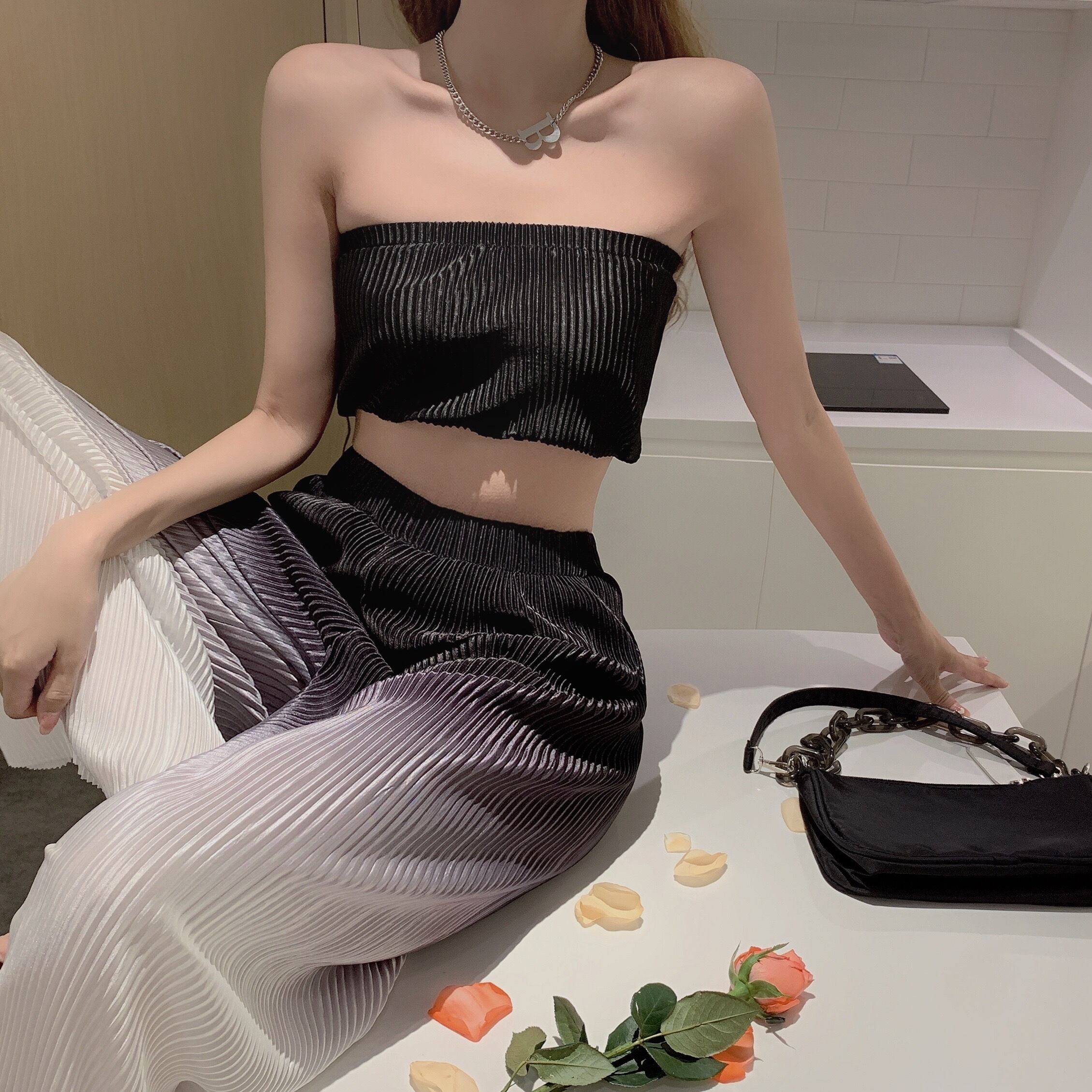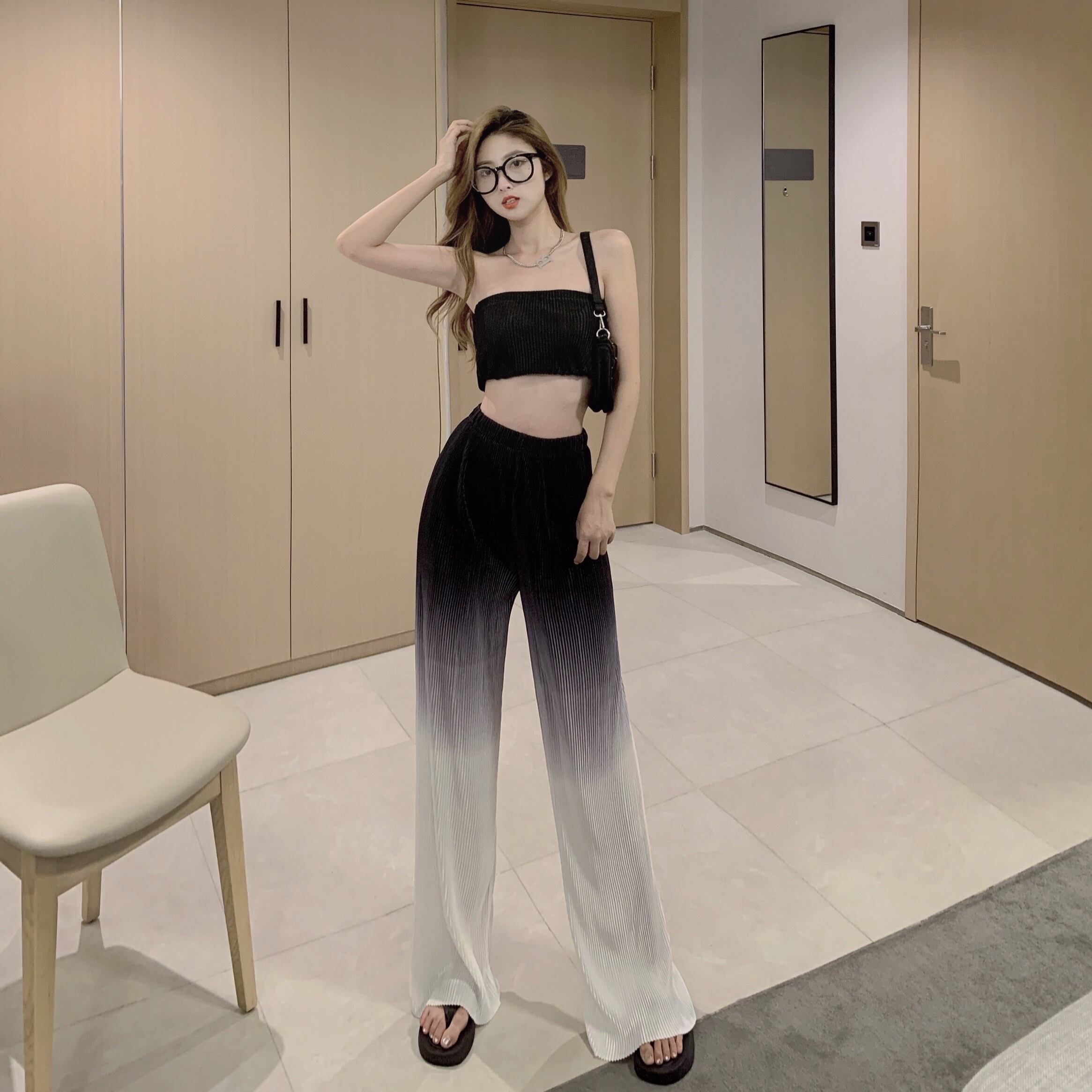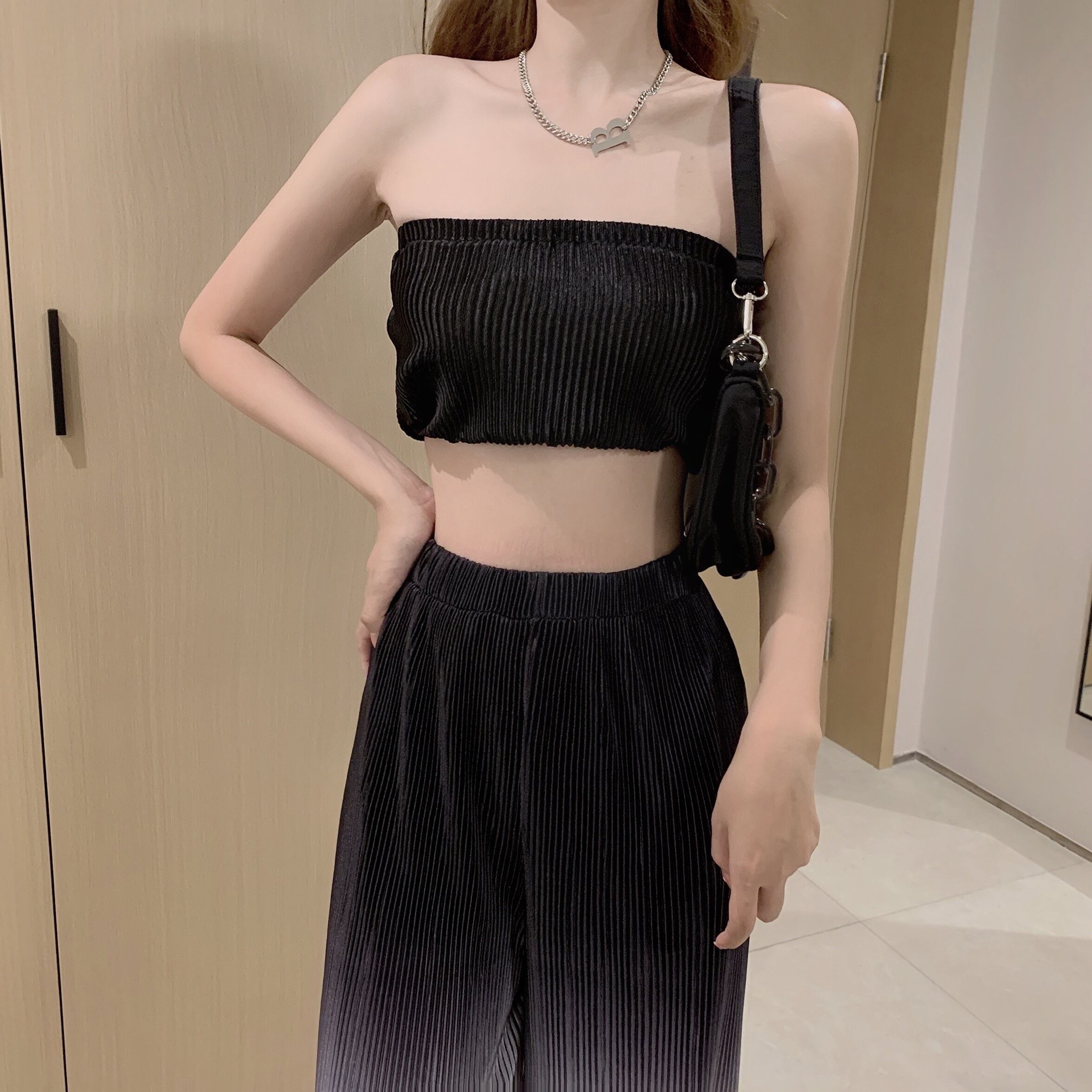 カラーハイウェストパンツ ルーズストラップレストップス セット Xiaofeijia29702271250