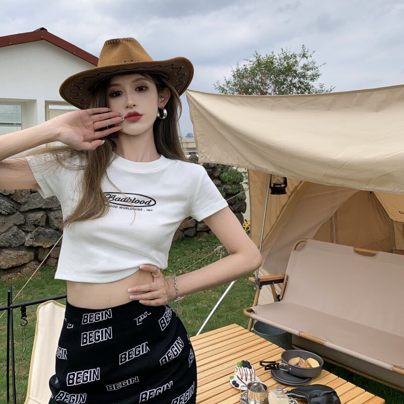 プリントショートTシャツ サマーホワイトハイウェストウェスト 夏物 タイツ ストッキング ソックス ヨーロピアン Xiaofeijia28815475549