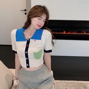 カラーFlowerデザイン ショートセーター 薄手サマークロップトップ トップス レディース 夏物 フラワーデザイン Xiaofeijia43004459042
