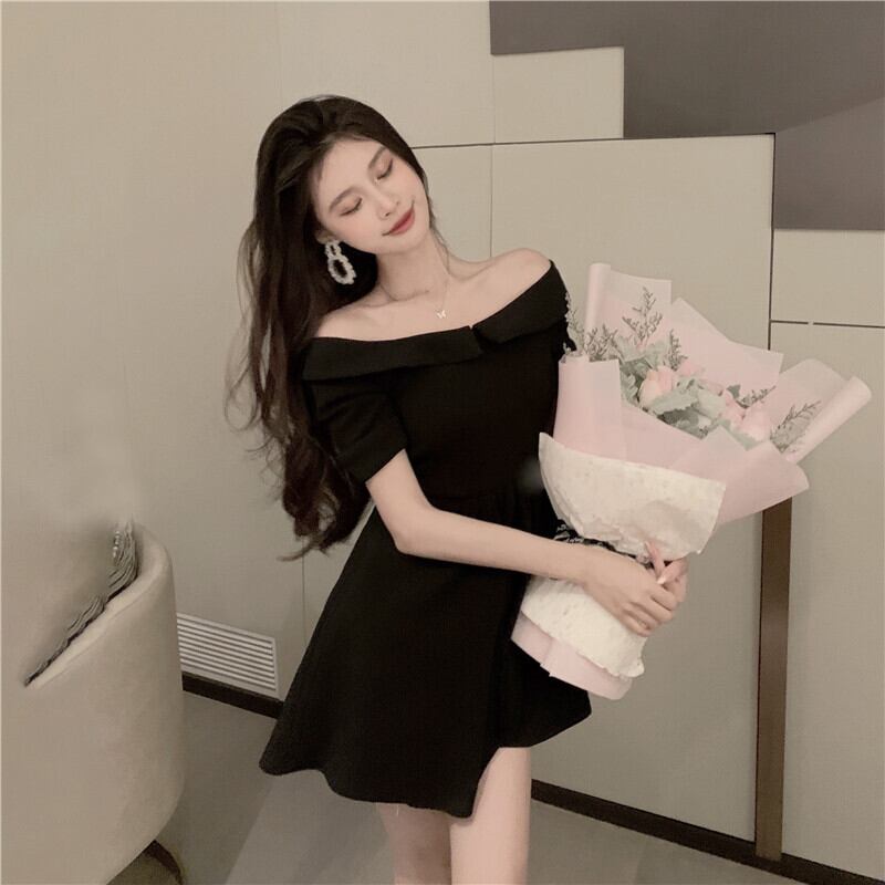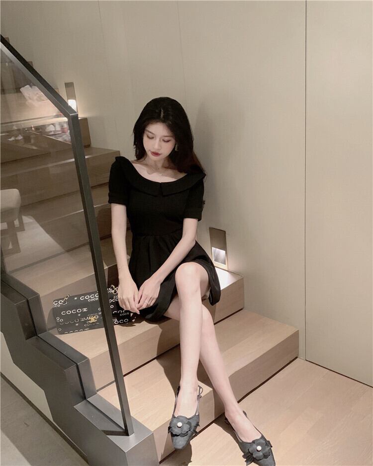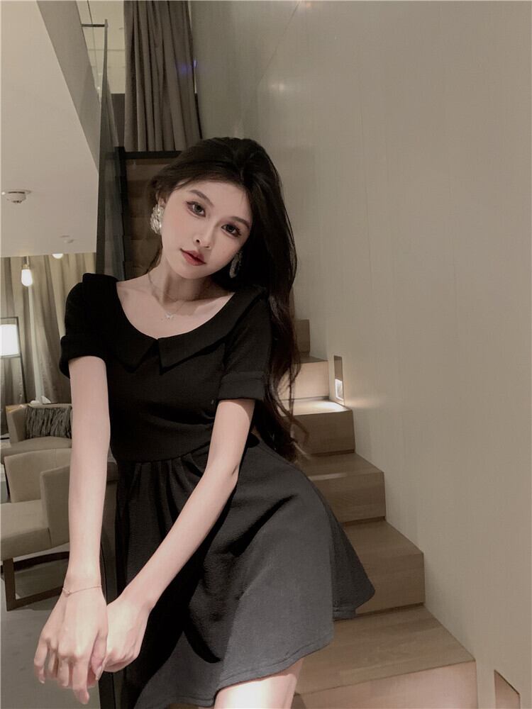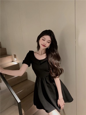 スタンダードスタイルブラックドレス スリムカラーサマースカート レトロ 夏物 Xiaofeijia90499252525