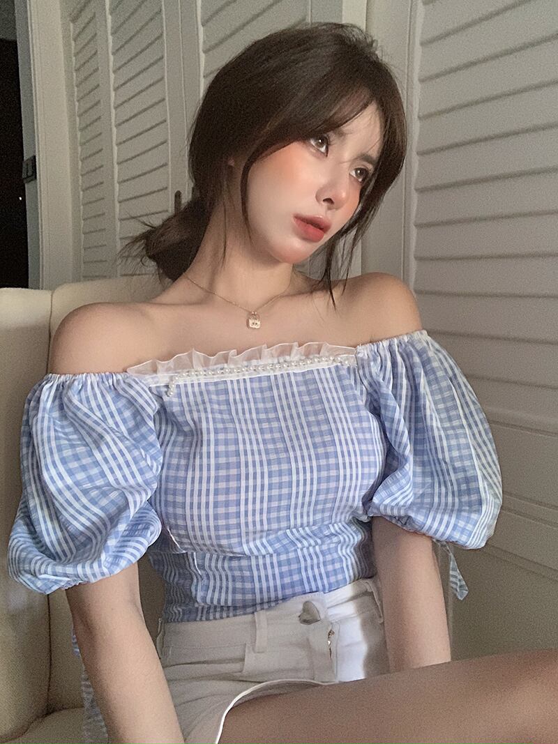サマー格子柄トップス 夏物 ピュア Xiaofeijia2710864045
