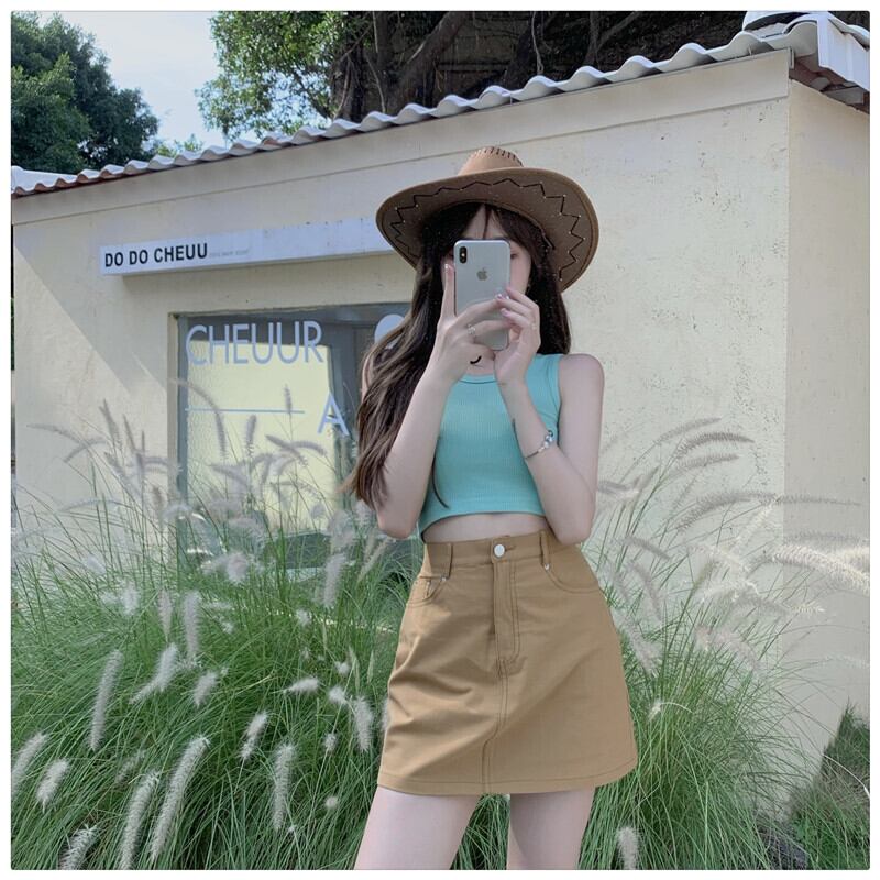 サマーショートハイウェストウェスト薄手Aラインスカート セット 夏物 Xiaofeijia48679368032