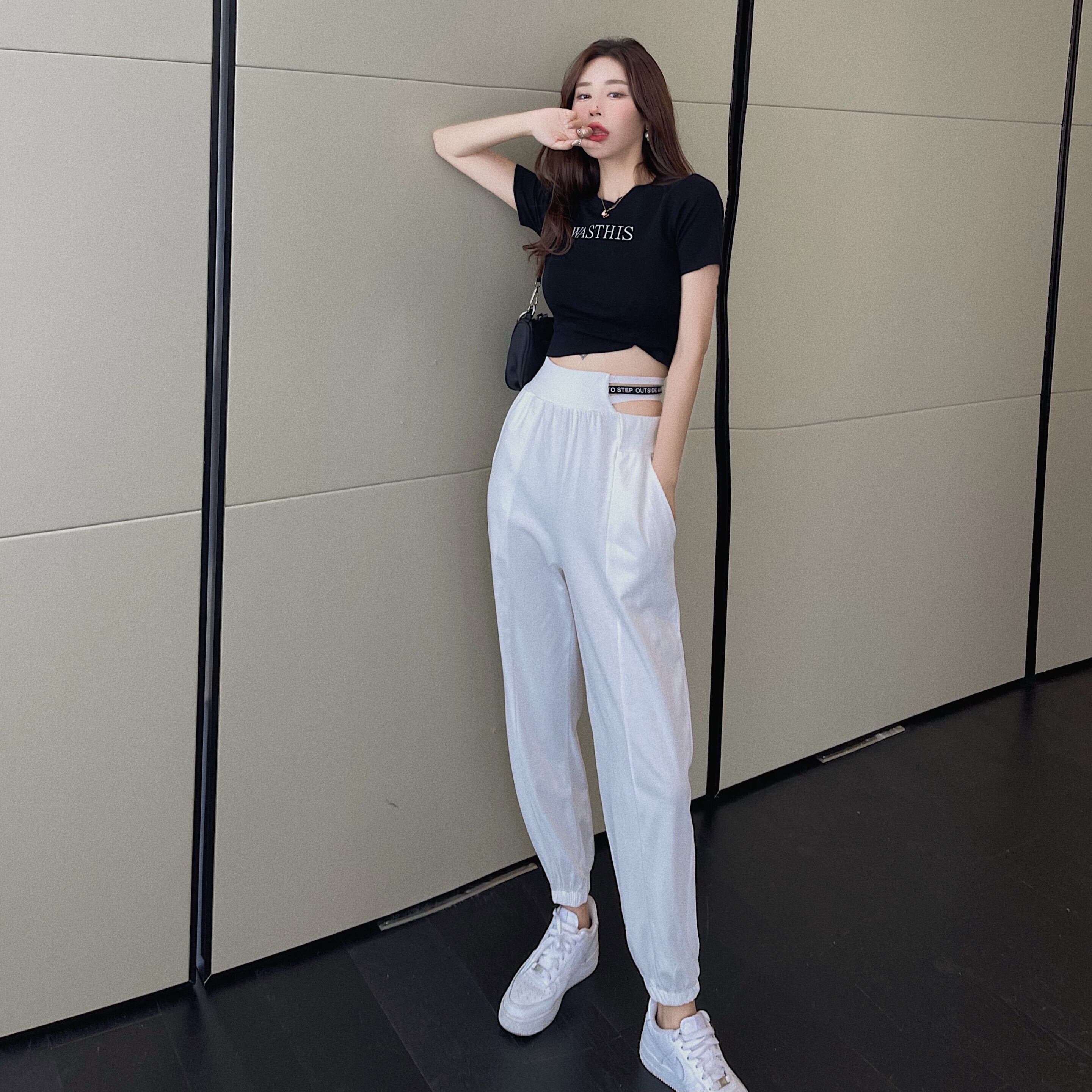 サイドウェストホワイトパンツ サマールーズハイウェストカジュアル 夏物 ヨーロピアン Xiaofeijia22242752781