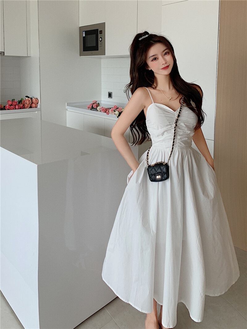 ホルターVネックドレス ウェストスリムロングスカート Xiaofeijia27492557077