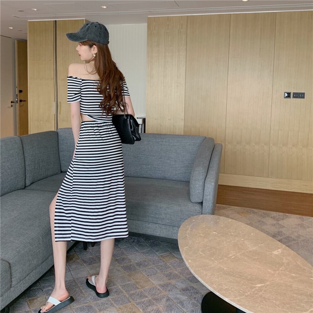 ストライプレディーススタンダードリボンショートブラウス スカート レトロ Xiaofeijia50234753377