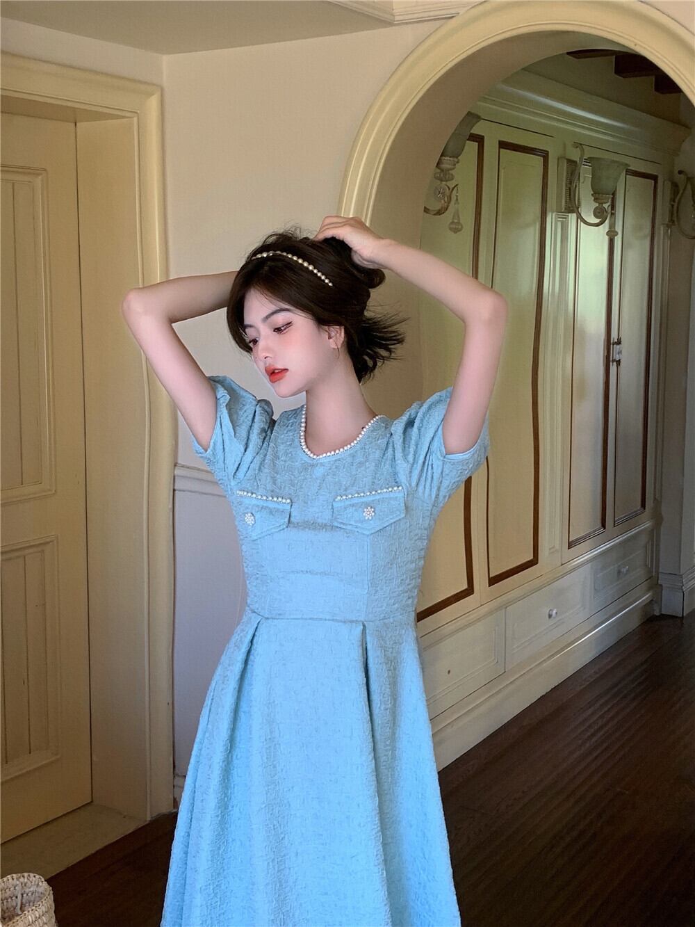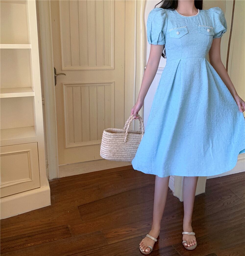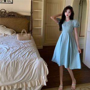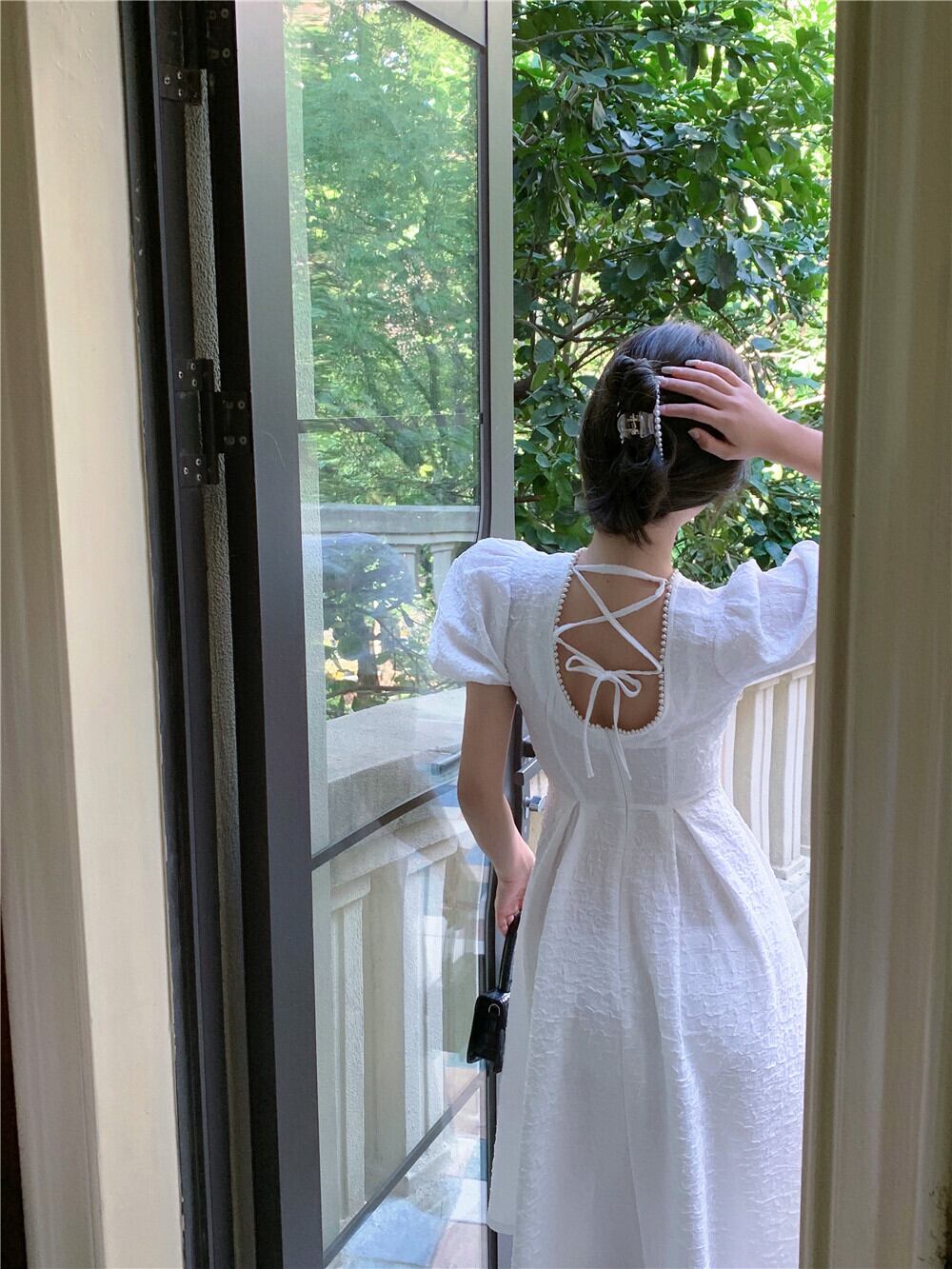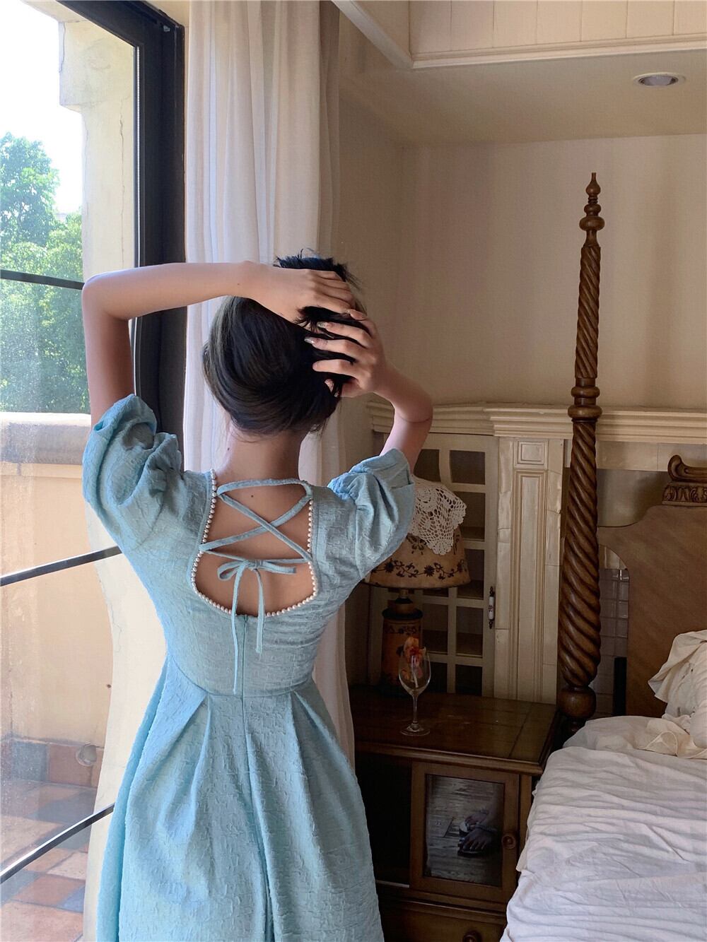 半袖スリーブウェスト薄手ホルタードレス ショート ハーフスリーブ スクウェア Xiaofeijia87623934616