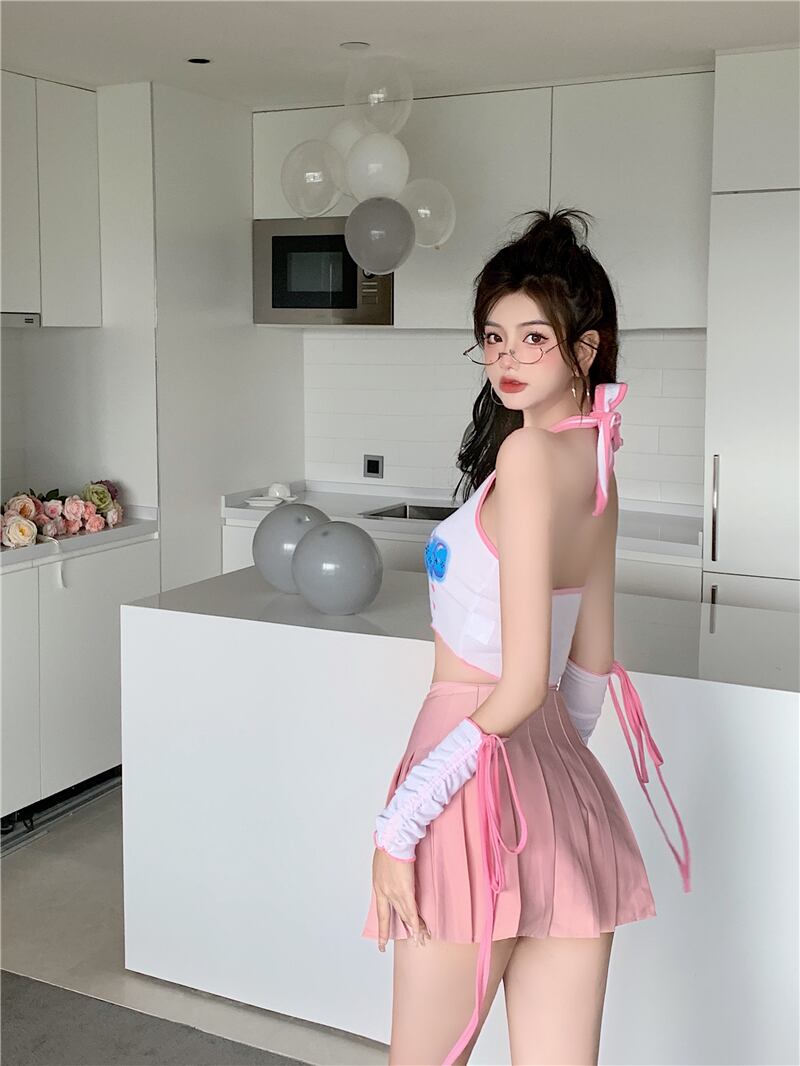 プリント柄レースホルタースリーブ 大人ガーリー スウィート キュート カジュアル Xiaofeijia5107344606
