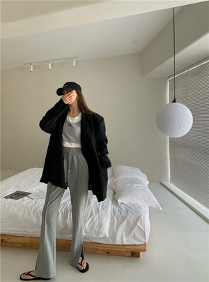 色:グレースリング,ブラックサスペンダー,黒いズボン,グレーパンツ