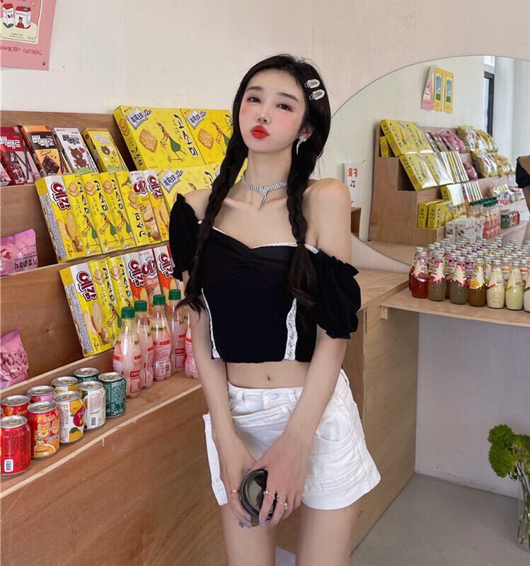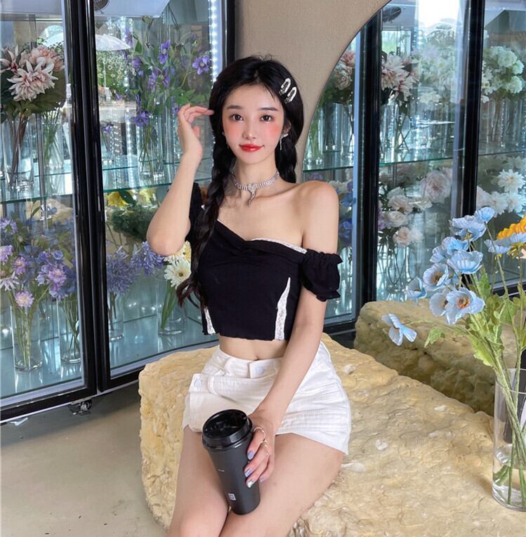 サマーレーススリムスリーブトップス 夏物 ステッチ Xiaofeijia44662535318