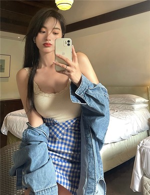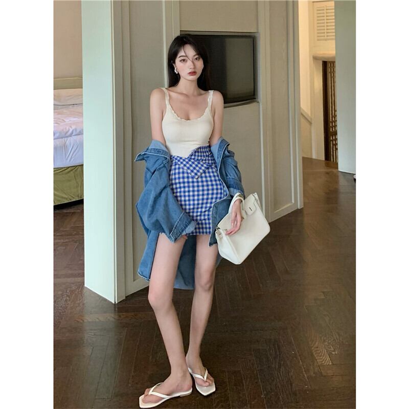スタイルスカート サマーハイウェストウェスト格子柄ショートレース 大人ガーリー スウィート キュート カジュアル 夏物 Xiaofeijia28878950719
