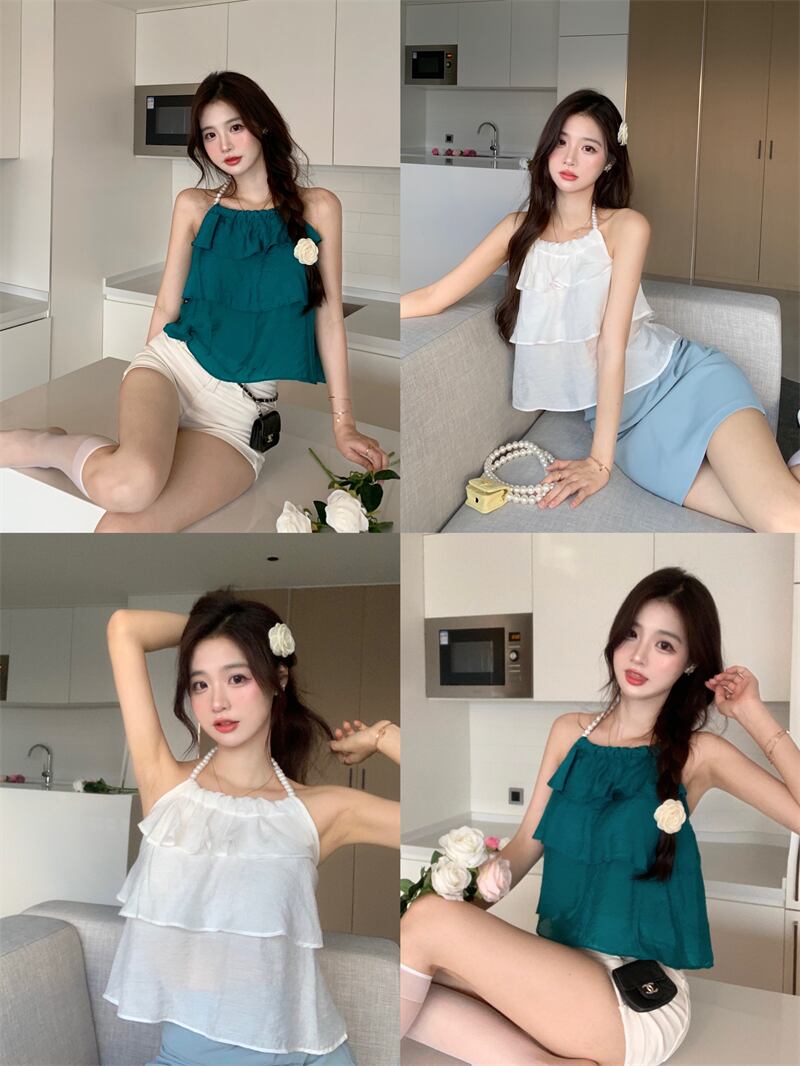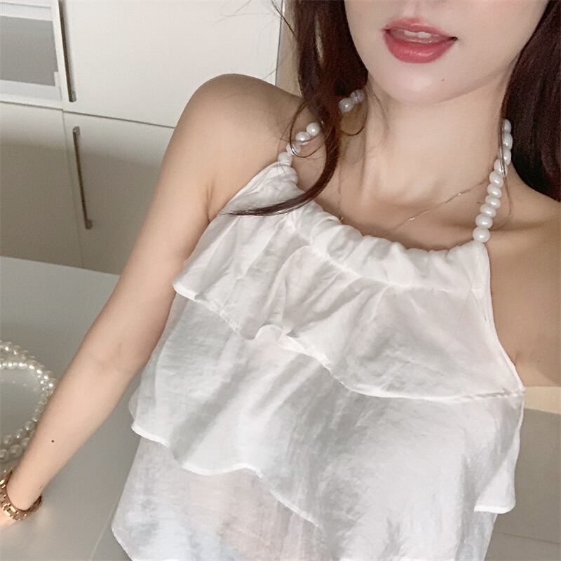 パールホルターサマーバッククロップトップ トップス 大人ガーリー スウィート キュート カジュアル 夏物 ピュア 真珠 Xiaofeijia90702068071